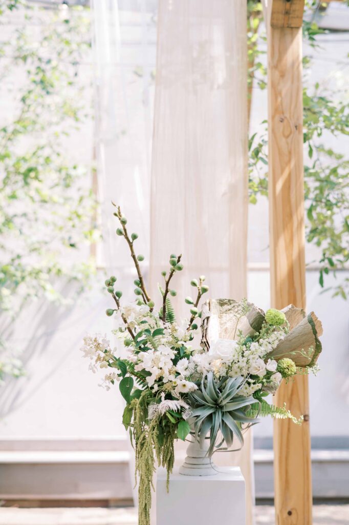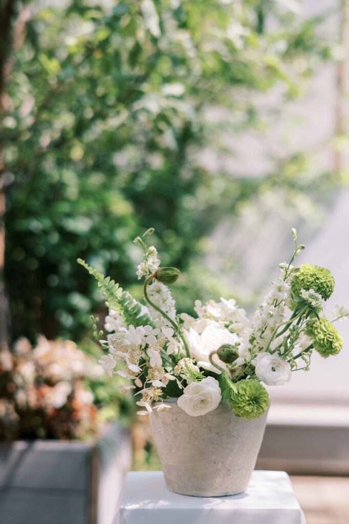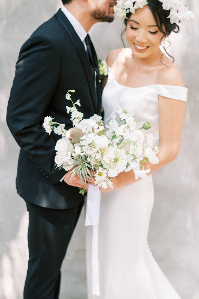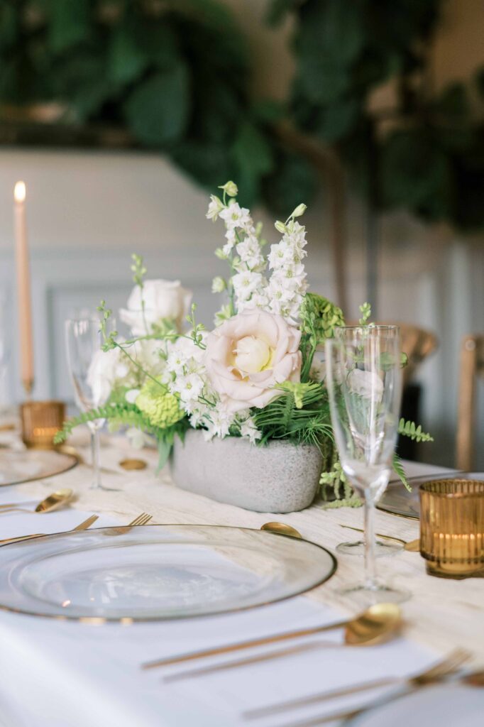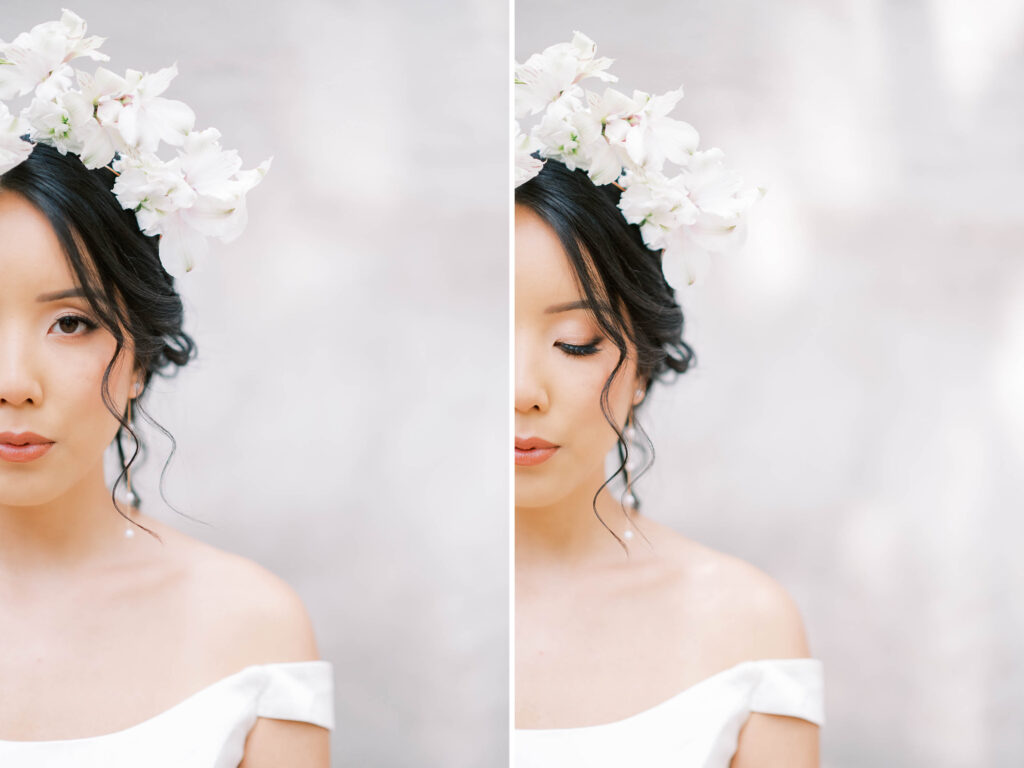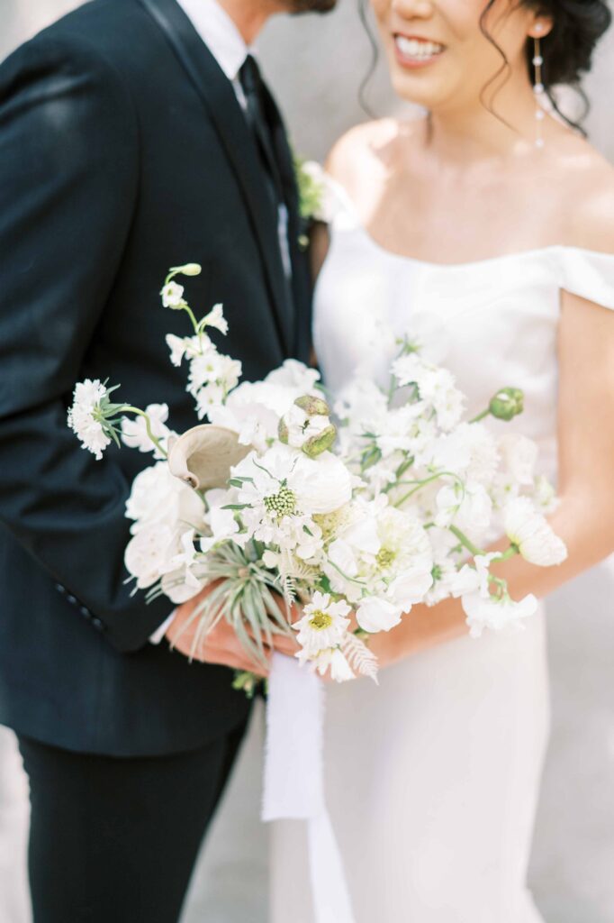 An elopement doesn’t mean you have to cut corners. Curating thoughtful details—like Ada’s floral headpiece and corresponding monochromatic floral arrangements—shows intentionality and enhances elegance. These details bring so much to the table (pardon the pun), especially in smaller events.