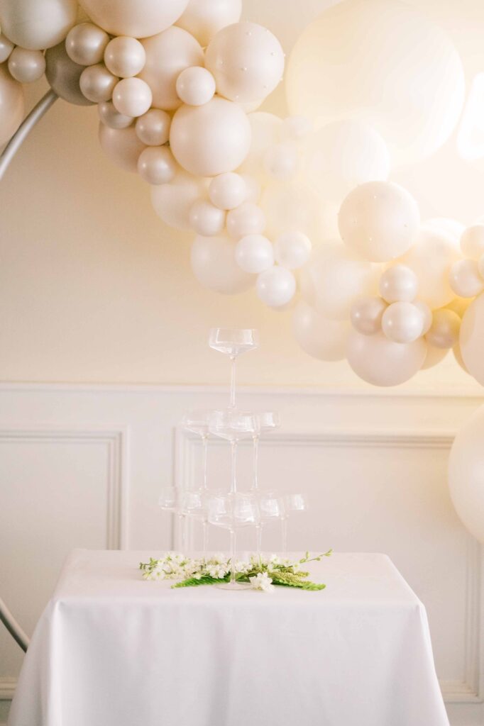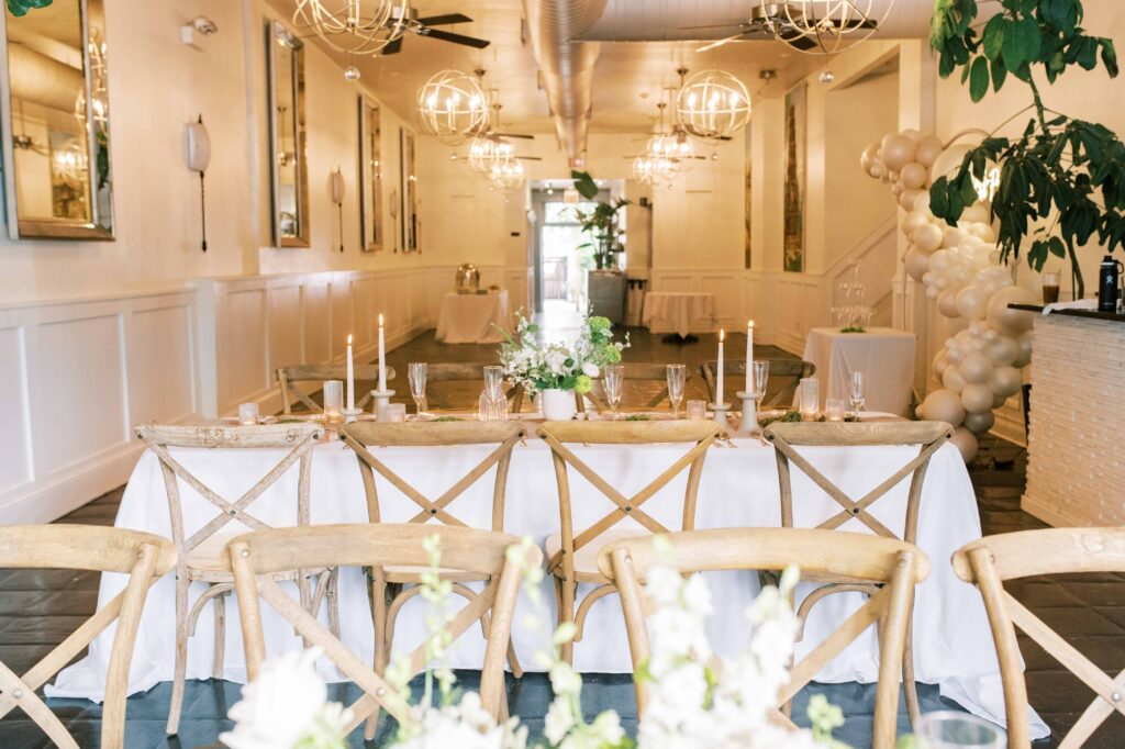 The details were intentionally simple yet undeniably chic. Pasteur’s modern event space set the scene beautifully, blending seamlessly with the restaurant’s French-Vietnamese elegance. A monochrome white palette accented with gold touches kept things sophisticated without overwhelming the eye. The tasteful balloon arch welcome sign and minimalist white and gold tablescapes enhanced the atmosphere, elevating the occasion even more.