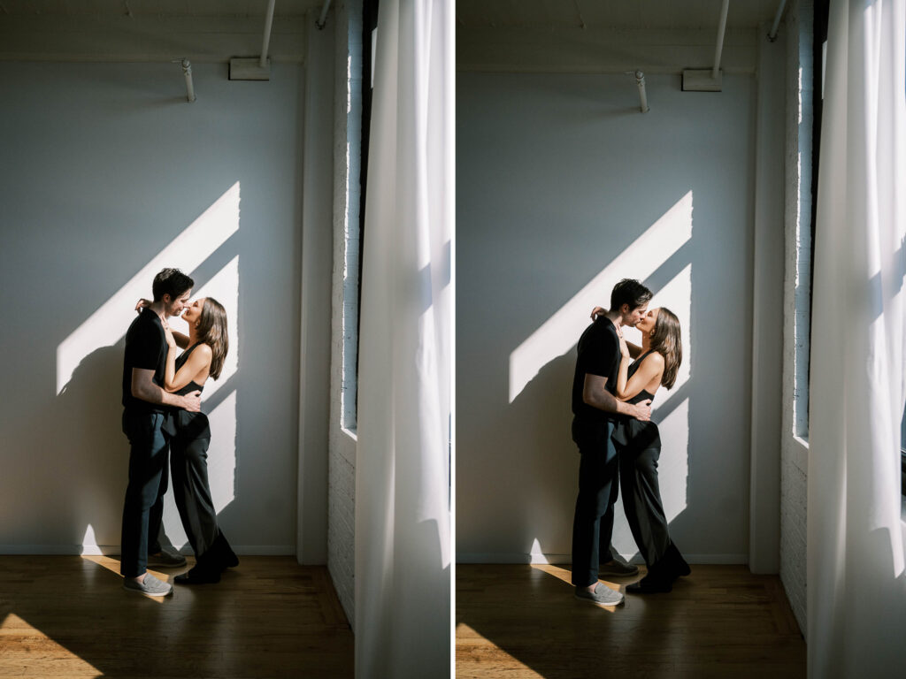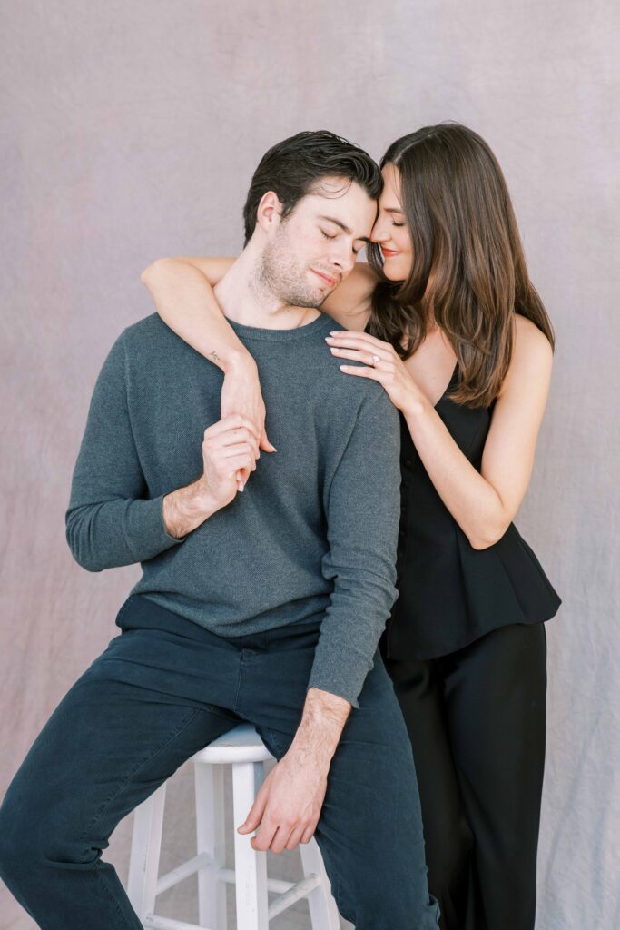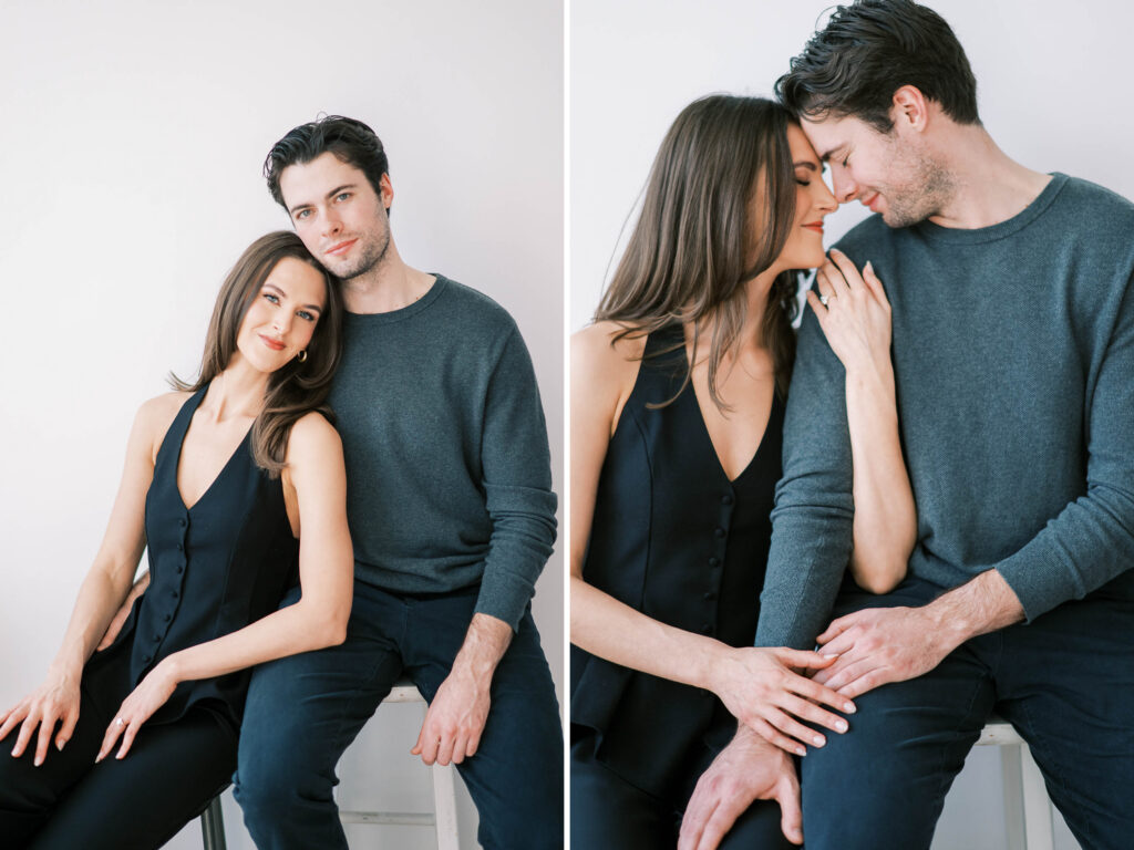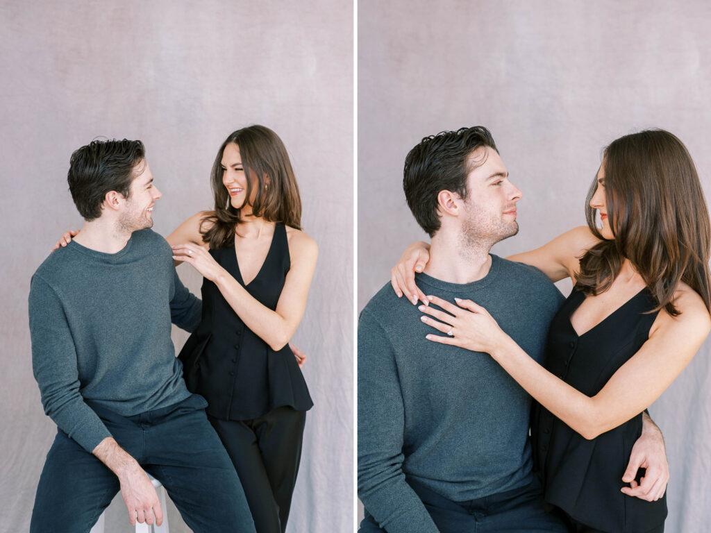 Their idea to split their engagement session between a studio and an outdoor location was perfect for Ava and Sam. It allowed them to express two completely different sides of their relationship. Visually, the contrast made the gallery even more compelling.