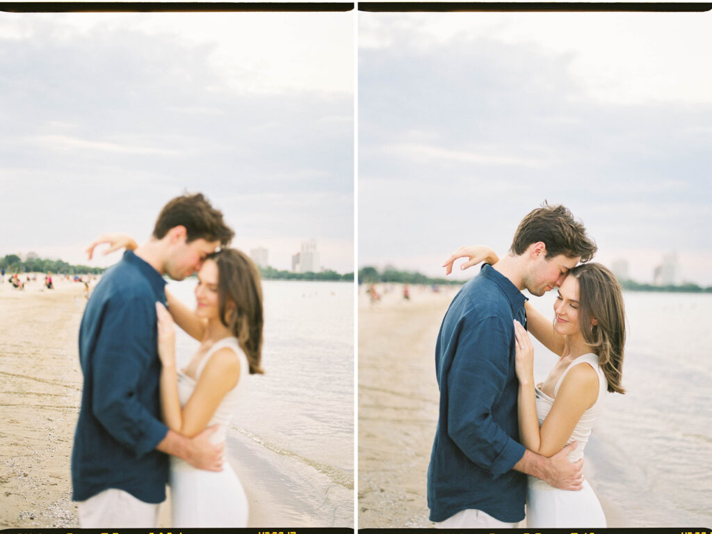 Chicago offers so many iconic backdrops for engagement photos. However, one of the most versatile and memorable options for couples is a Chicago studio and outdoor engagement session, captured on digital and film photography, that blends bold editorial portraits with relaxed, natural moments.