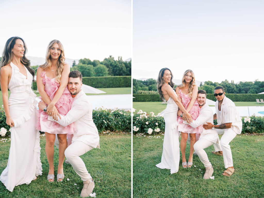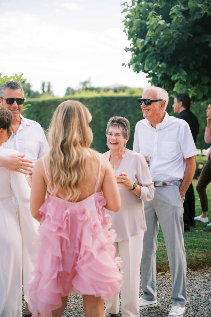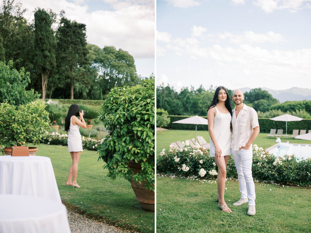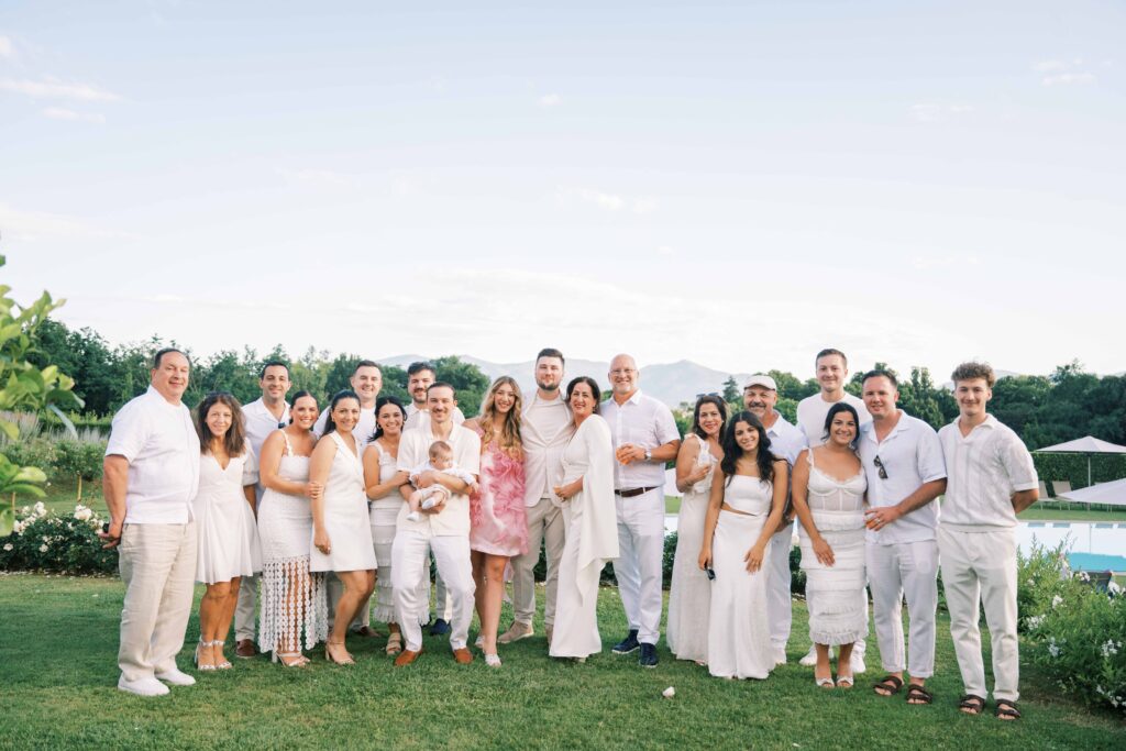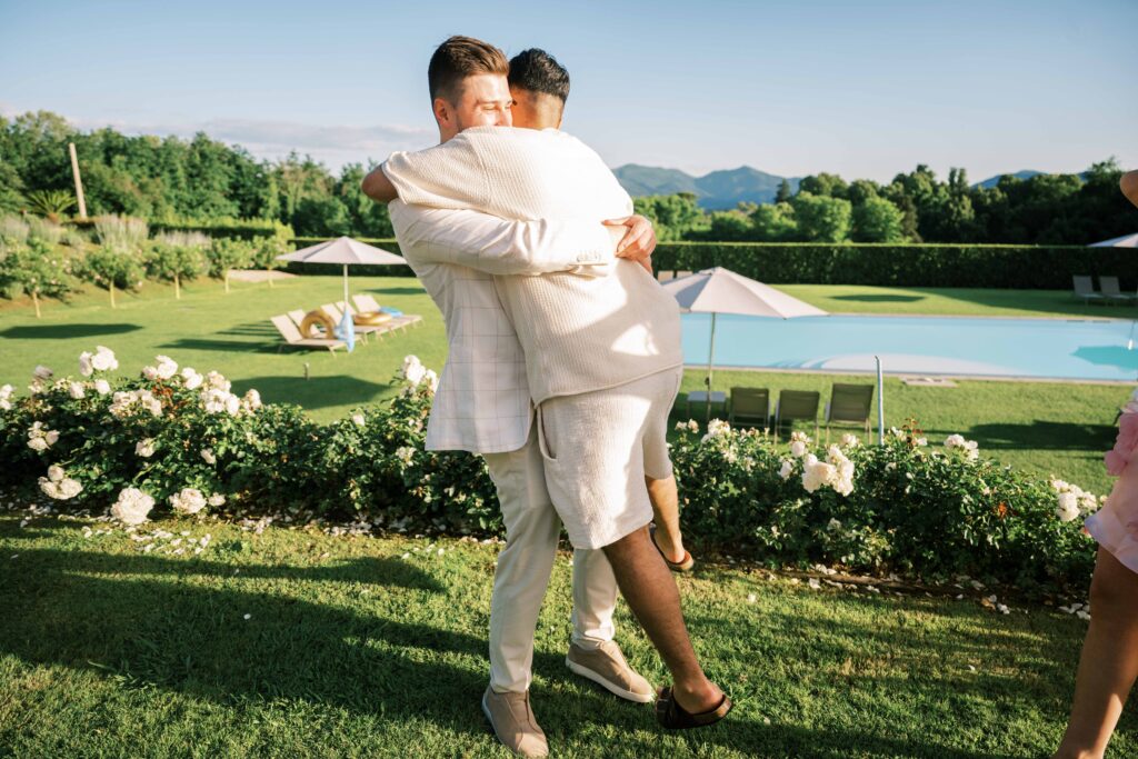 Are you curious about the amazing Italian venue they chose for the welcome dinner and guest accommodations? Check out L’Arancera di Villa Grabau. It’s a stunning Tuscan villa (aka mansion) that can host up to 23 people! With a sparkling pool and garden. I can’t think of a better place to reconnect and share laughs over a long weekend.
