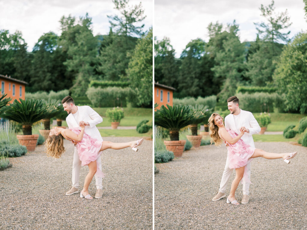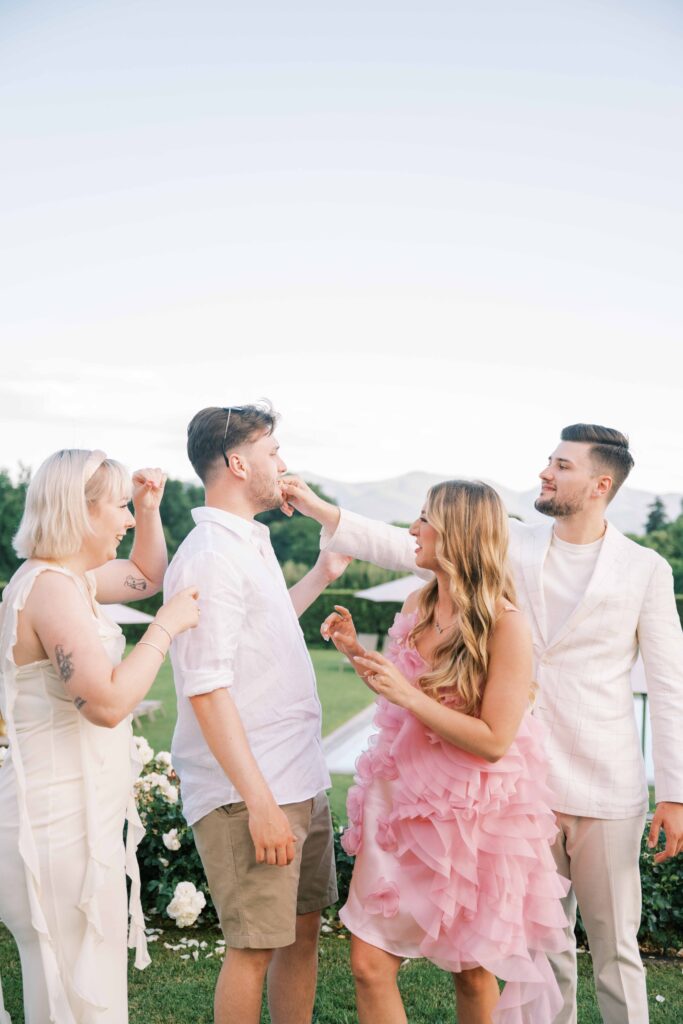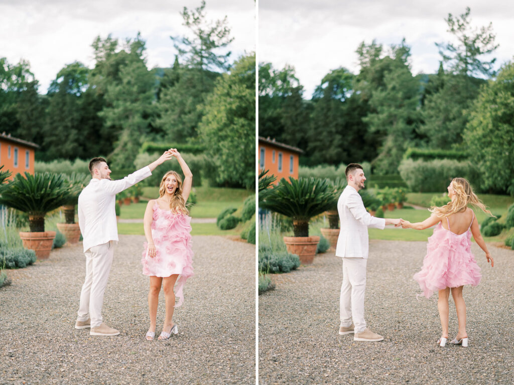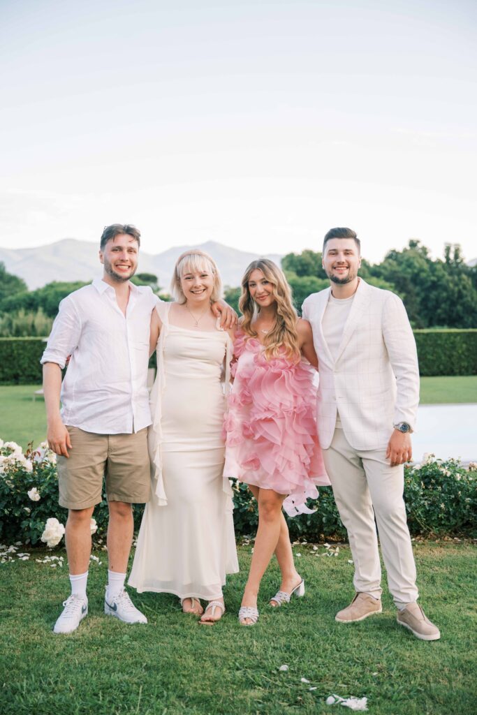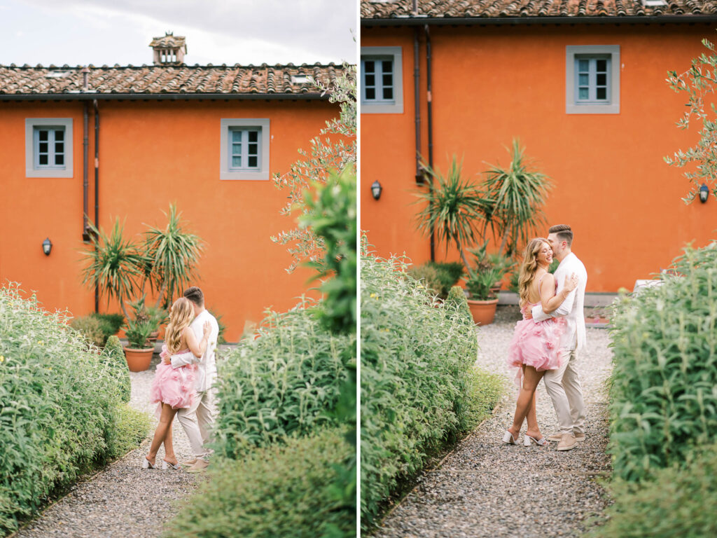 Are you curious about the amazing Italian venue they chose for the welcome dinner and guest accommodations? Check out L’Arancera di Villa Grabau. It’s a stunning Tuscan villa (aka mansion) that can host up to 23 people! With a sparkling pool and garden. I can’t think of a better place to reconnect and share laughs over a long weekend.