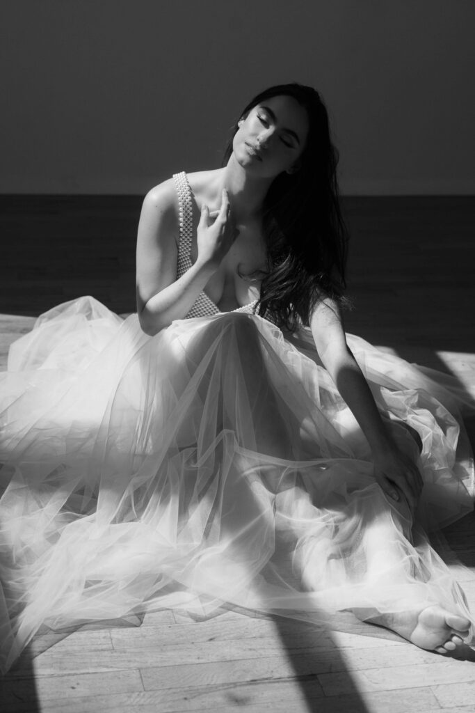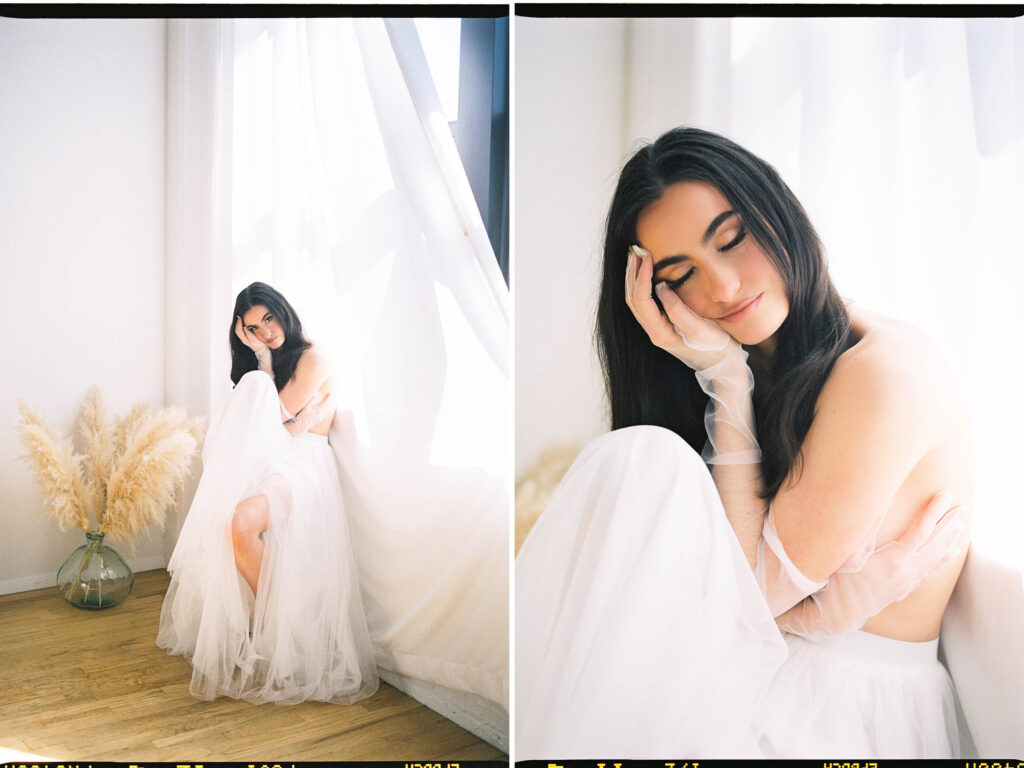 Light is everything. In my Chicago studio, the light is softest in the morning—pale and gentle, like watercolors over skin. We’ll work with shadows, letting them wrap around you, creating shapes and mystery. I love the glow of natural light—the way it softens edges and leaves just enough shadow to intrigue. And film is the perfect medium to capture it.