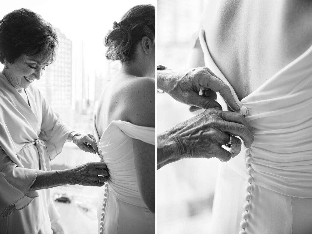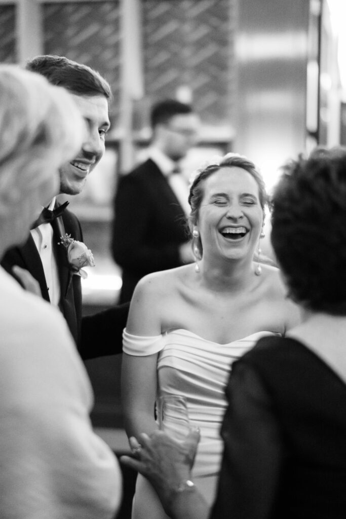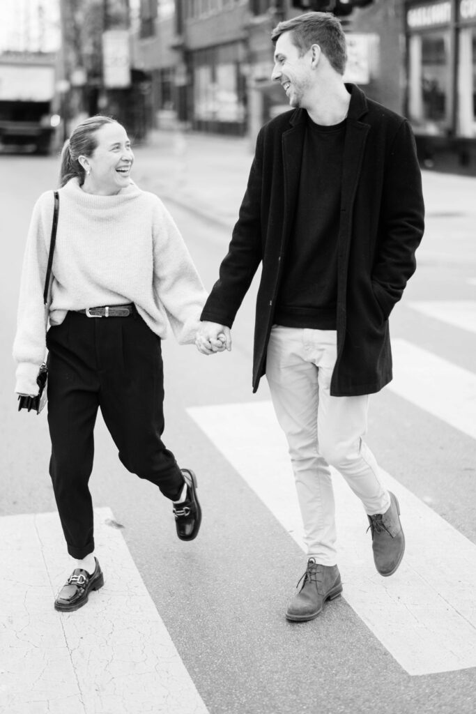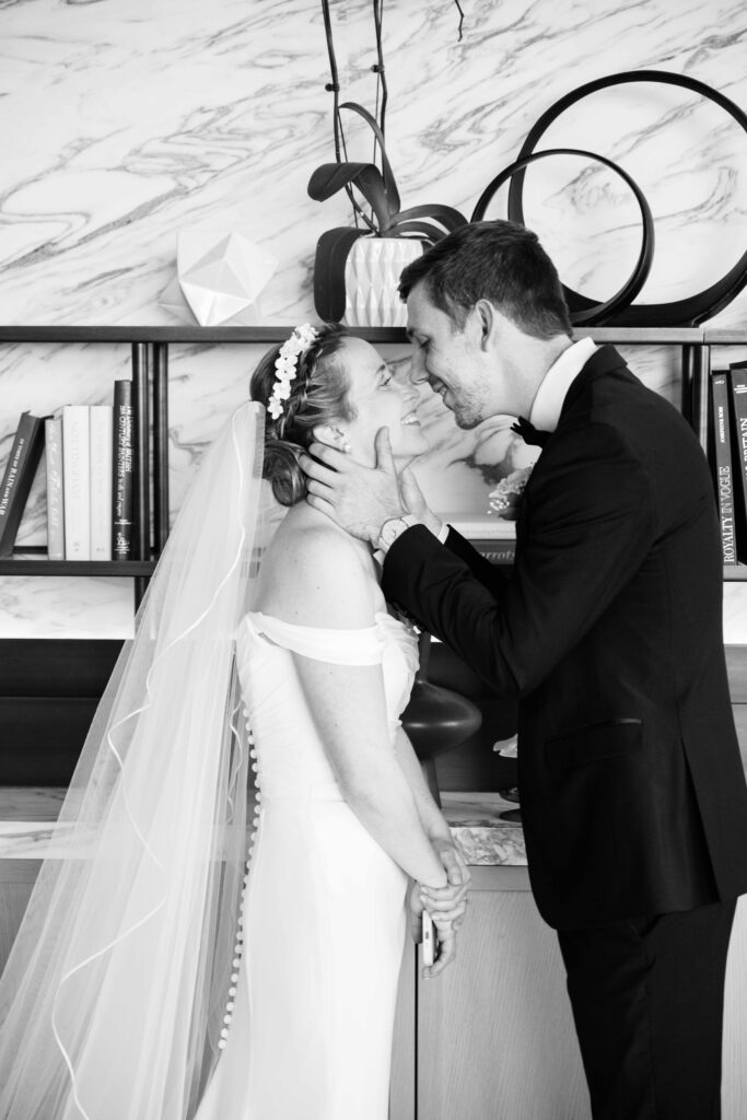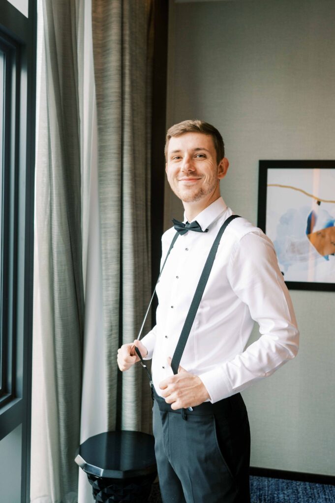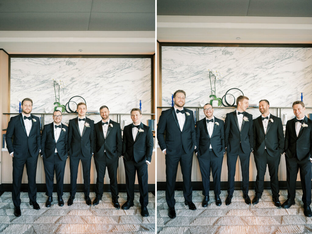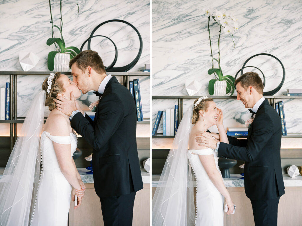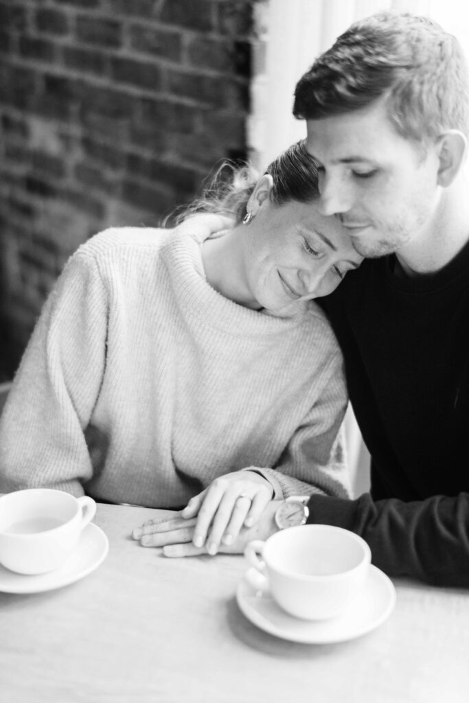 Since Kaley and Jack traveled from across the pond, we added a cozy engagement session the day before their wedding. We started with an intimate shoot inside a Chicago coffee shop. This relaxed moment allowed us to capture the couple’s easy-going personalities and offered a sweet contrast to their black-tie wedding the next day. (Speaking of contrast, I just loved their coffee shop session attire. They flipped their cream and black outfits so she wore a cream top while he wore black and vice versa for the pants. This couple has style!) Their laid-back mini shoot is a reminder to engaged couples everywhere: your wedding weekend doesn’t have to be all grandeur, all the time. Often, the simplest moments become the most treasured.