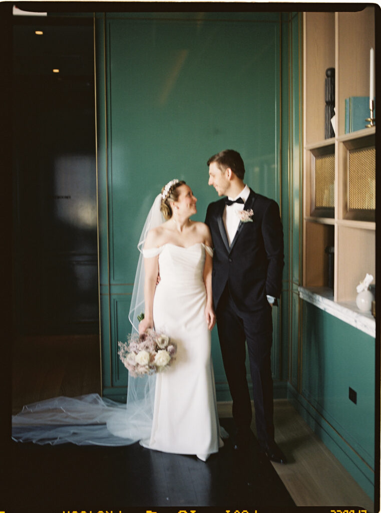 Throughout the night, Kaley’s love for film photography matched my own. Together, we documented their story on multiple film formats: romantic 35mm shots, lush medium-format portraits, and playful, spontaneous Polaroids. Mixing film formats is an artistic way to bring depth and texture to your visual narrative, allowing each moment to shine in its own unique way.