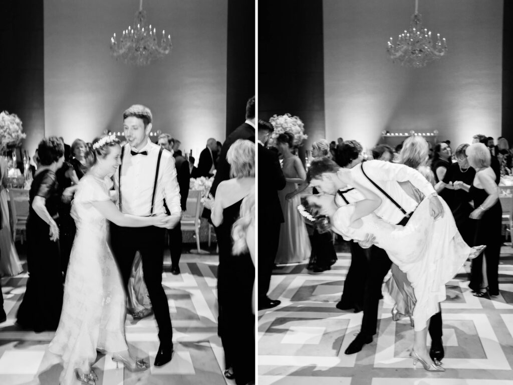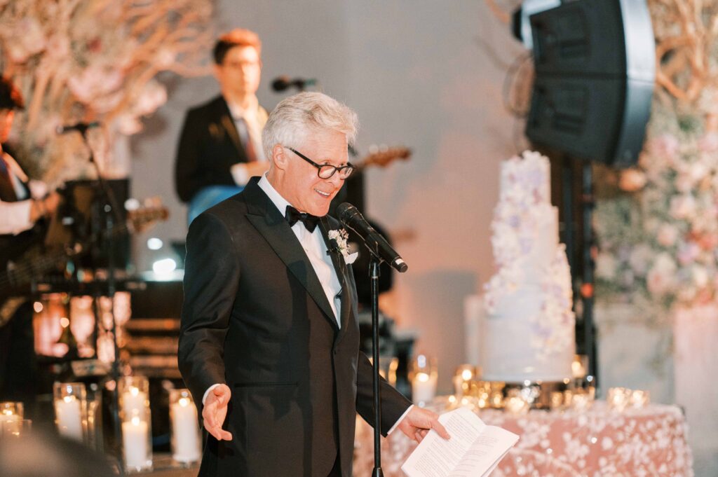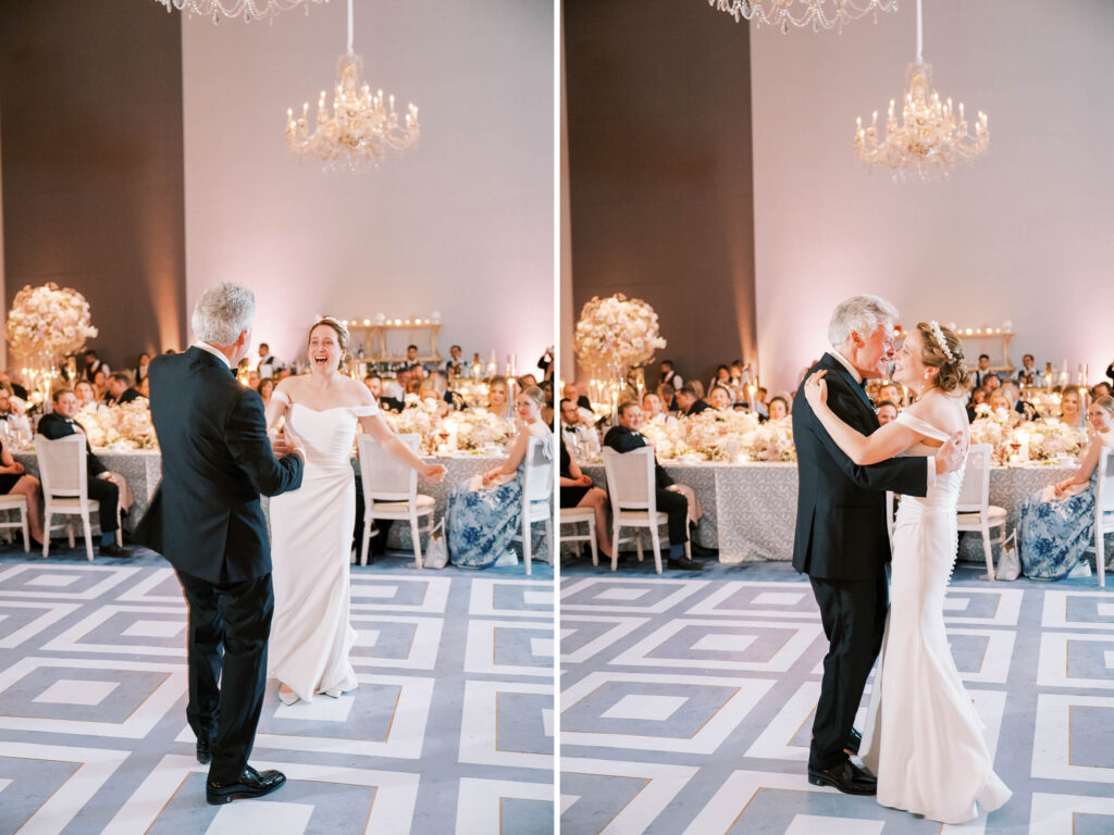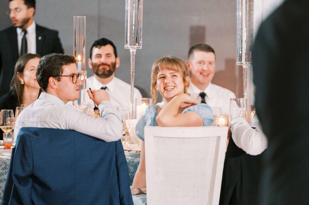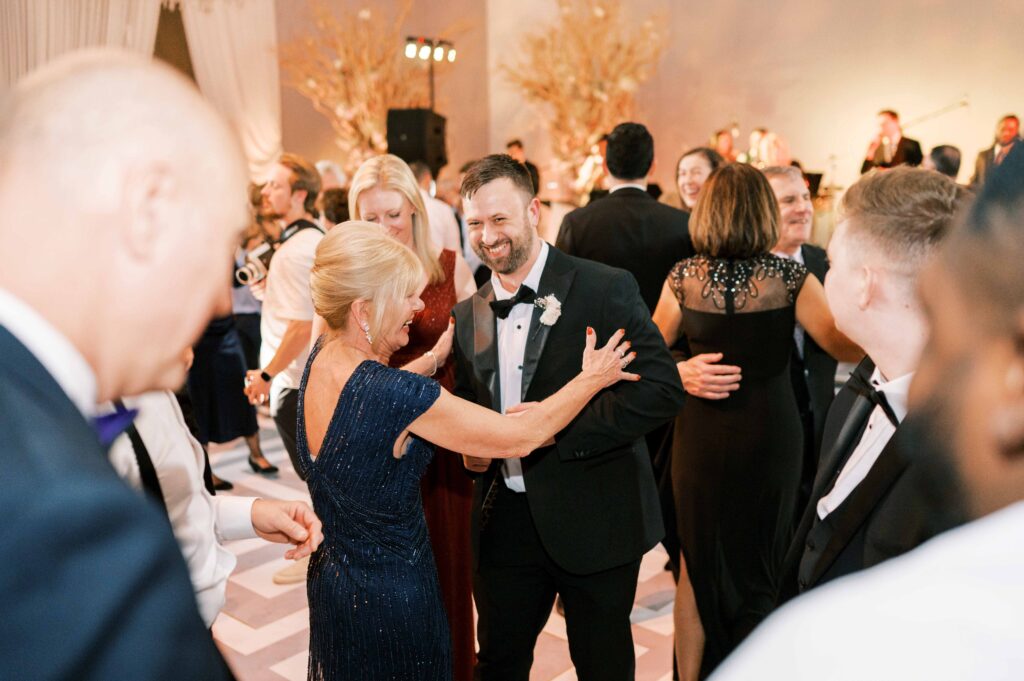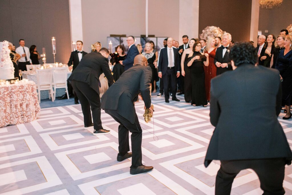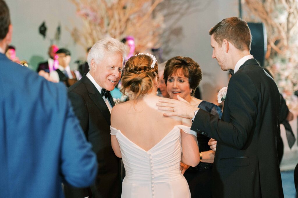 One of my favorite things about this couple? How they incorporated their individual passions into their wedding day. Kaley’s love for whimsical florals shone throughout the decor. Soft petals cascaded over the ceremony altar and subtle petal appliqués adorned the table linens. Then, there was the most stunning four-tiered cake I’ve ever laid eyes on. Jack’s passion for music infused their celebration with spectacular energy. An orchestra serenaded the ceremony, a jazz band set the tone for cocktail hour, and, as a surprise, one bridesmaid performed a heartfelt guitar piece.