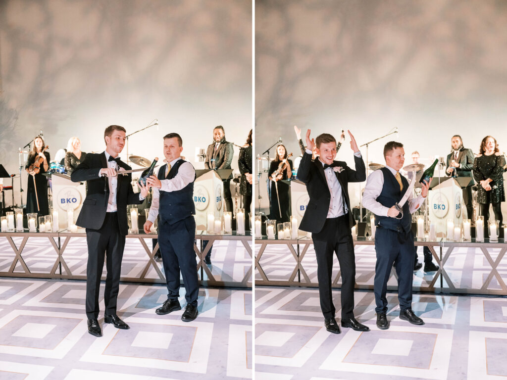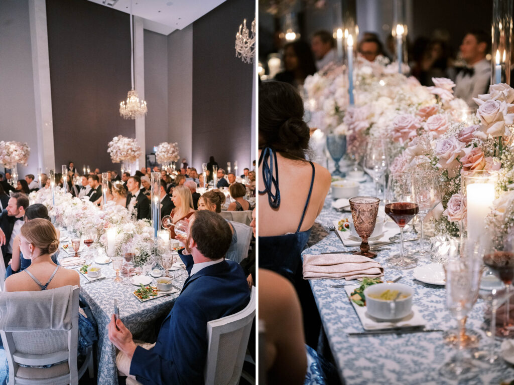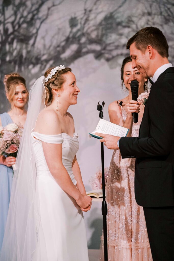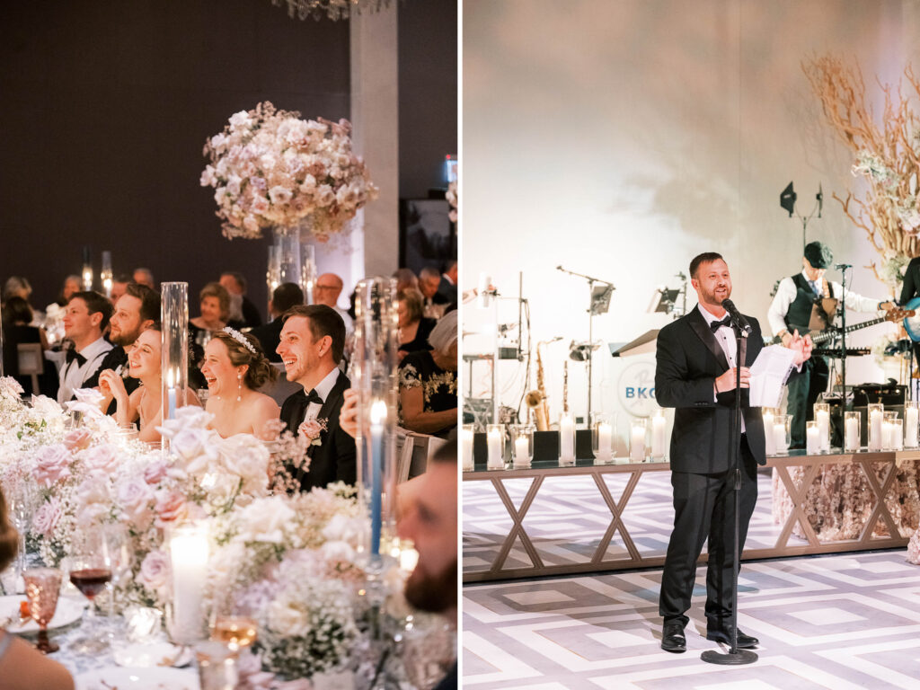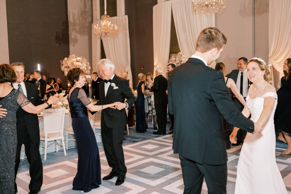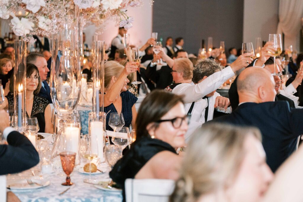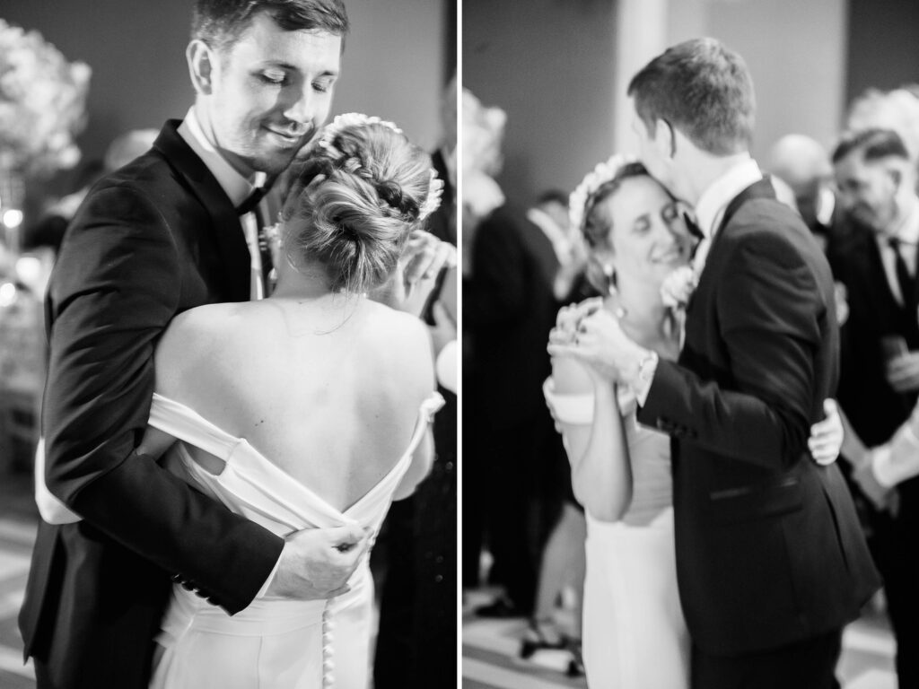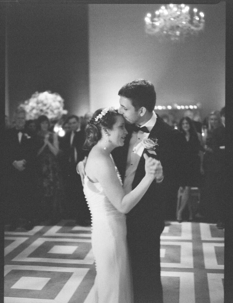 One of my favorite things about this couple? How they incorporated their individual passions into their wedding day. Kaley’s love for whimsical florals shone throughout the decor. Soft petals cascaded over the ceremony altar and subtle petal appliqués adorned the table linens. Then, there was the most stunning four-tiered cake I’ve ever laid eyes on. Jack’s passion for music infused their celebration with spectacular energy. An orchestra serenaded the ceremony, a jazz band set the tone for cocktail hour, and, as a surprise, one bridesmaid performed a heartfelt guitar piece.
