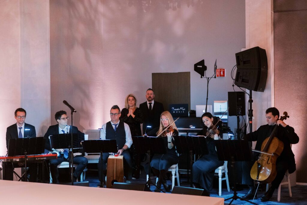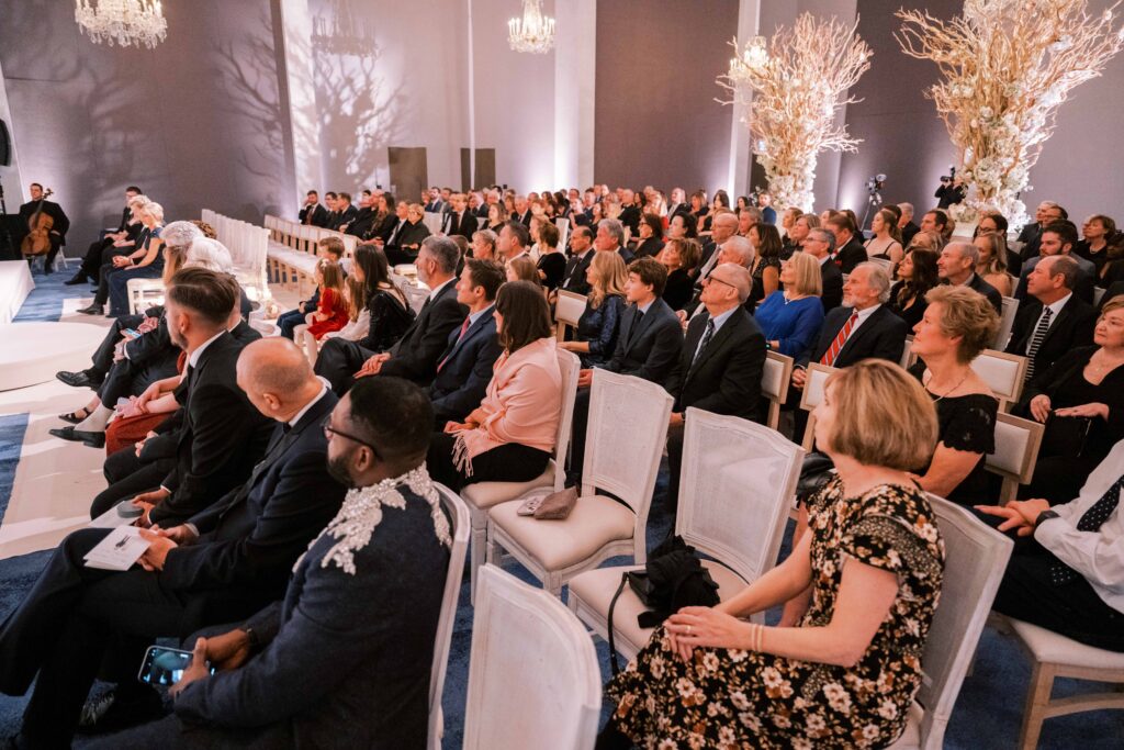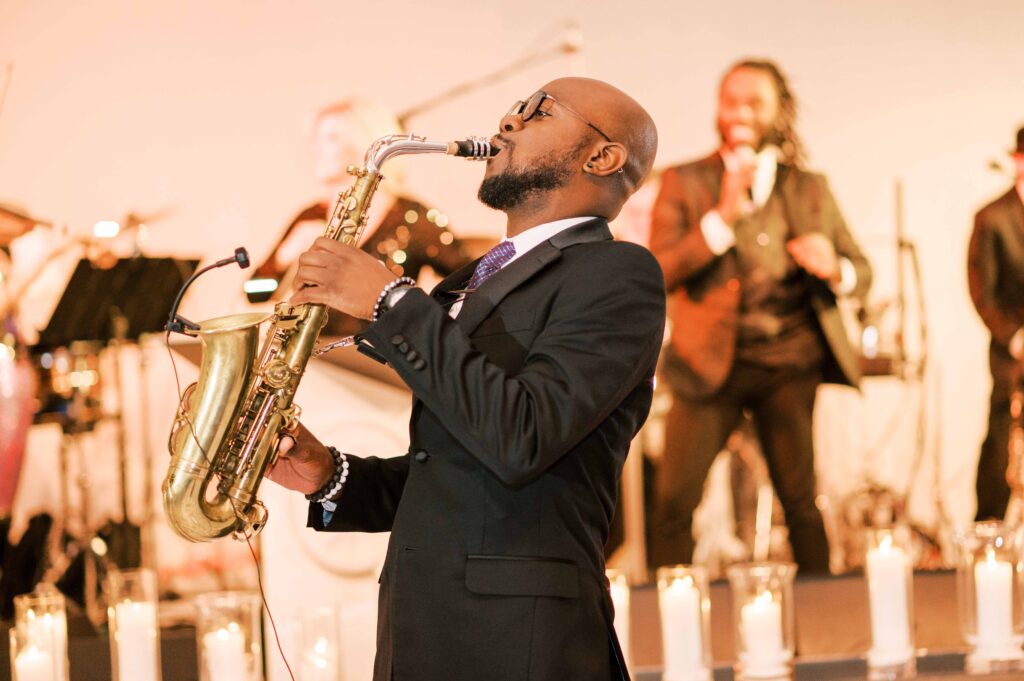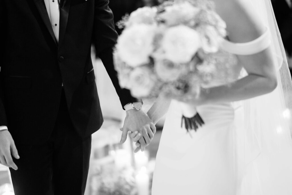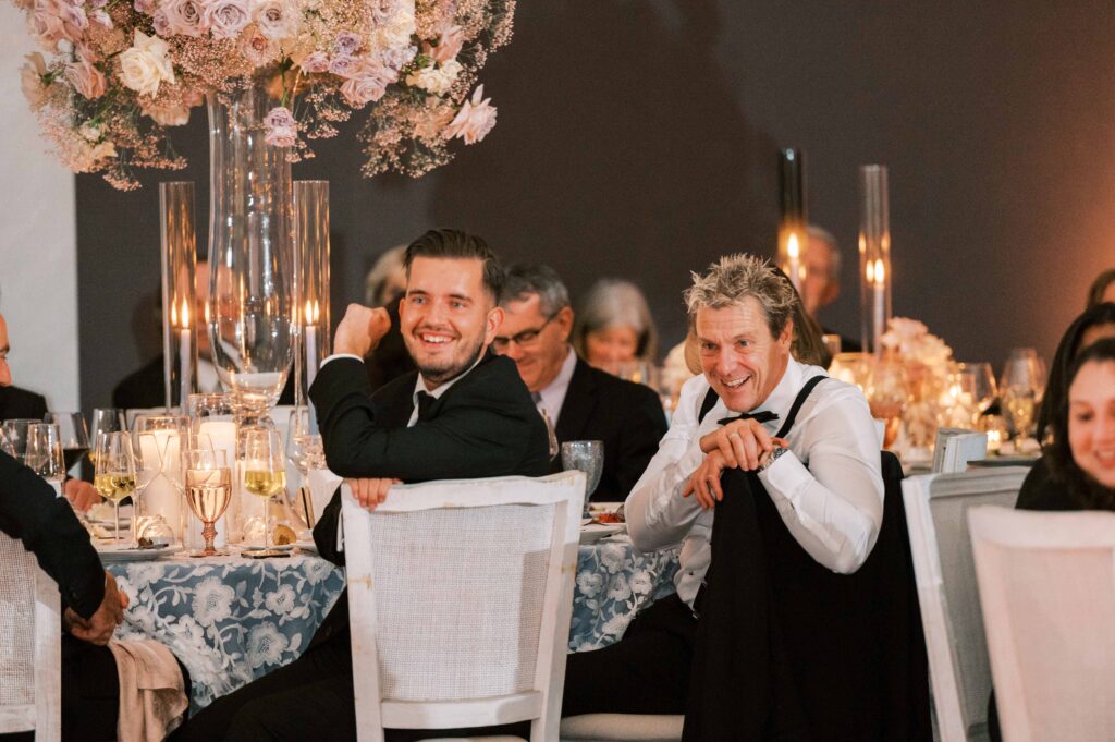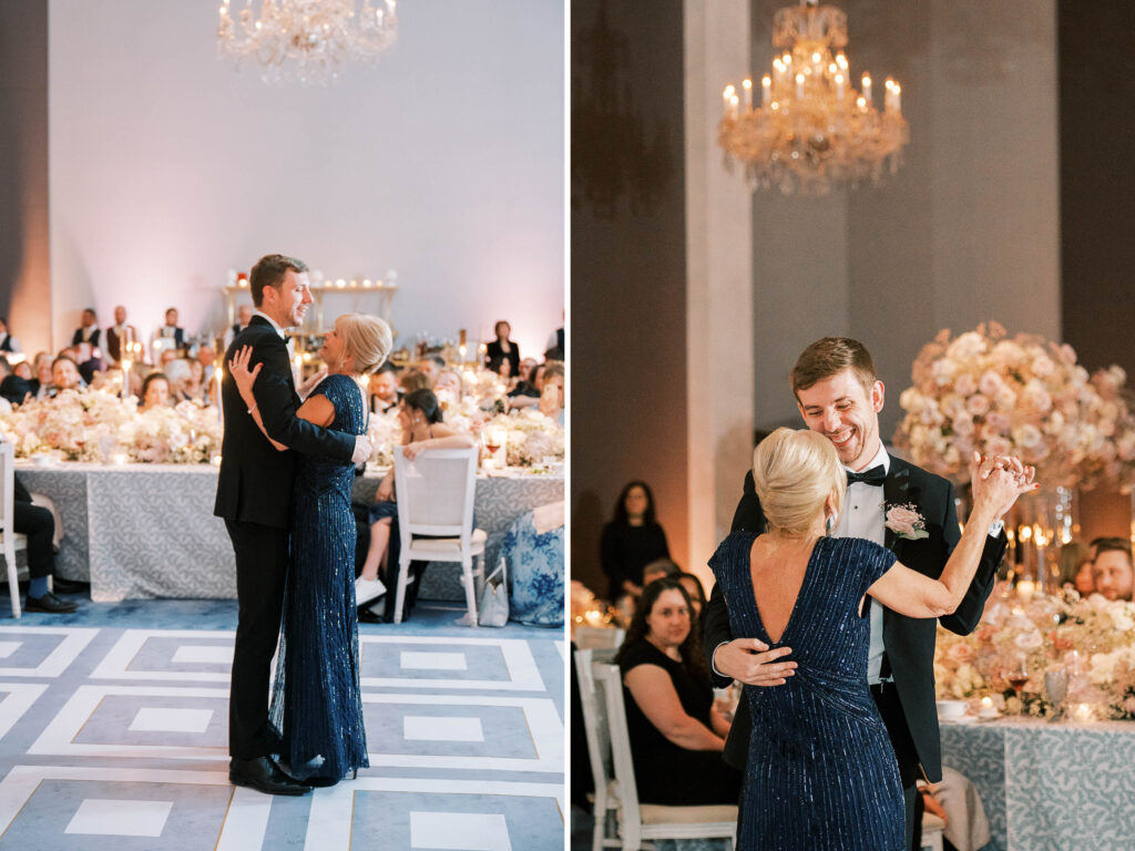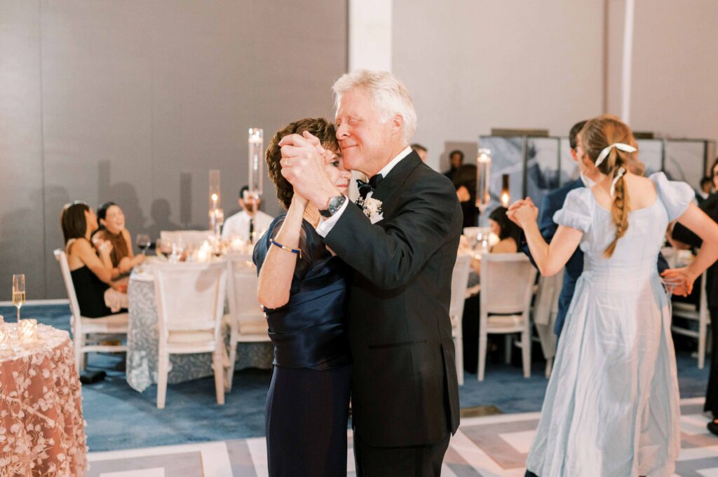 One of my favorite things about this couple? How they incorporated their individual passions into their wedding day. Kaley’s love for whimsical florals shone throughout the decor. Soft petals cascaded over the ceremony altar and subtle petal appliqués adorned the table linens. Then, there was the most stunning four-tiered cake I’ve ever laid eyes on. Jack’s passion for music infused their celebration with spectacular energy. An orchestra serenaded the ceremony, a jazz band set the tone for cocktail hour, and, as a surprise, one bridesmaid performed a heartfelt guitar piece.