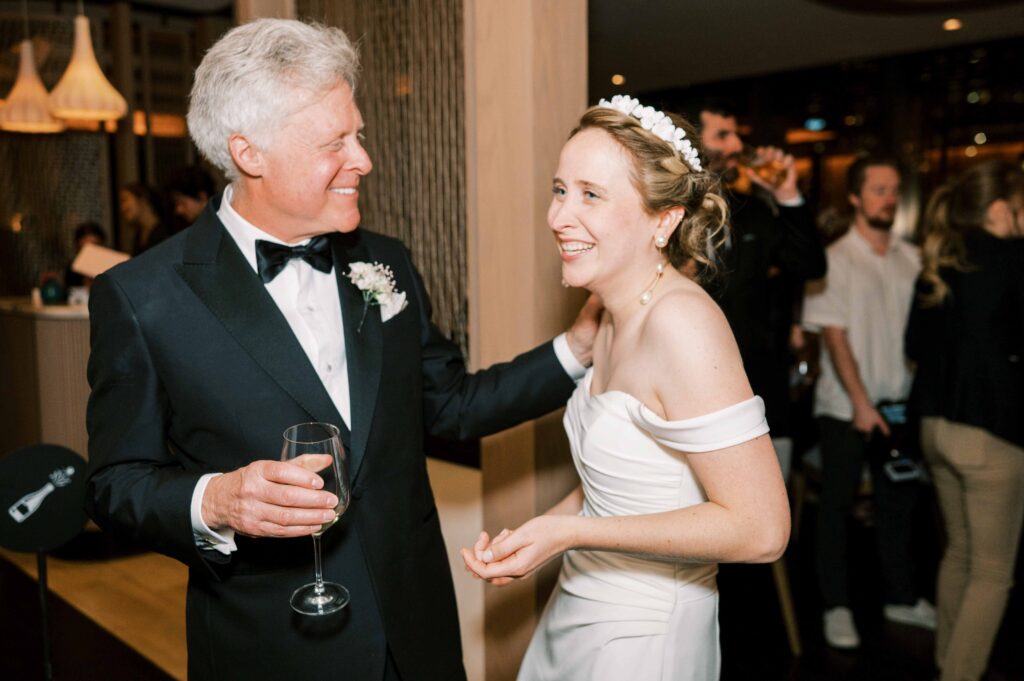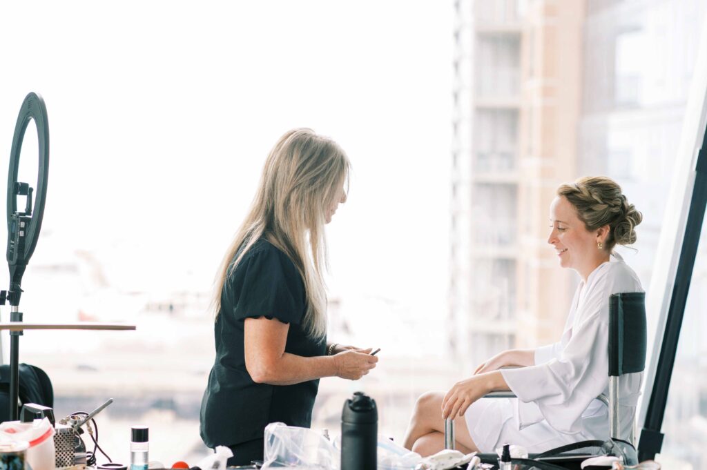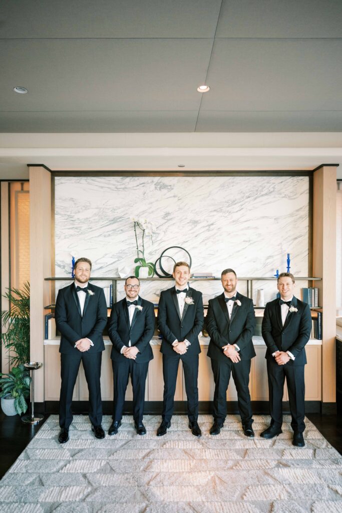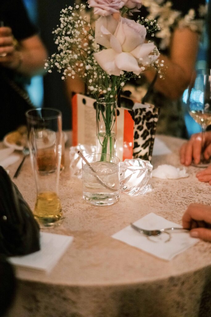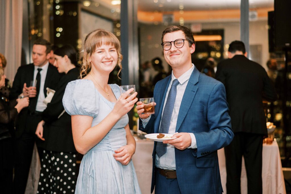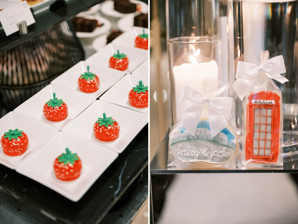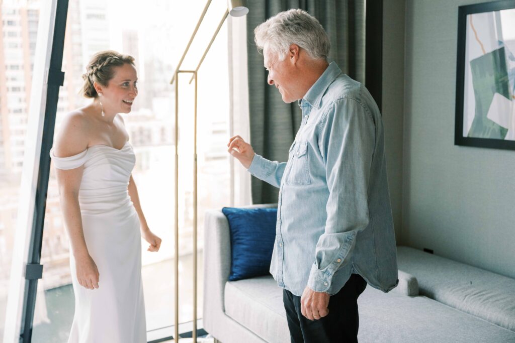 When I walked into Kaley’s bridal suite, it became clear this wasn’t just another wedding. Thoughtful details seemed to be everywhere: bridesmaid boxes filled with goodies like chic reception sneakers and cozy shawls (perfect for the rooftop chill!). Even their invitation suite showcased adorable custom illustrations of each wedding party member. It’s these tiny personal touches that guests always remember.