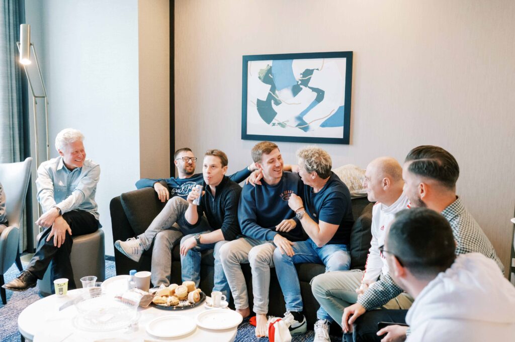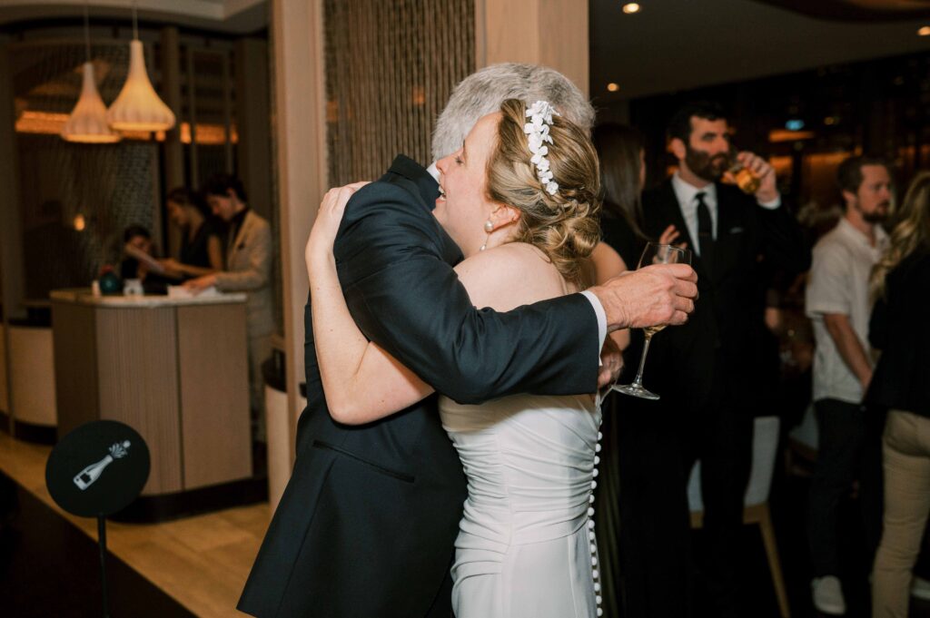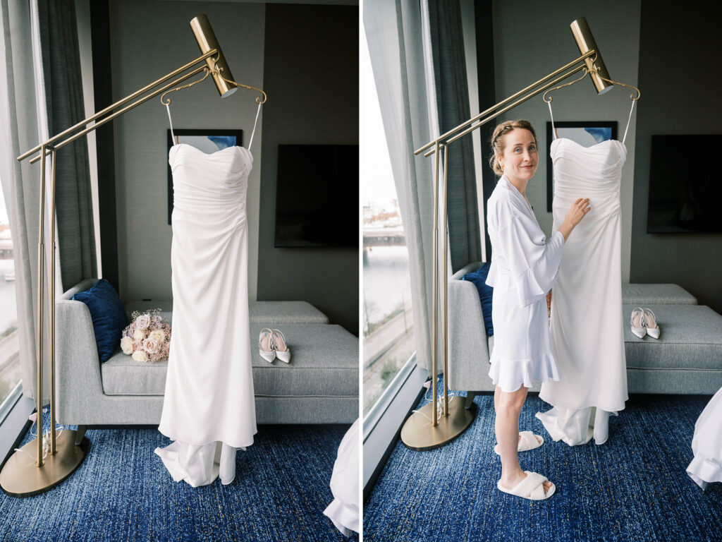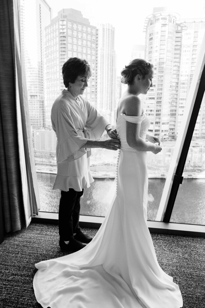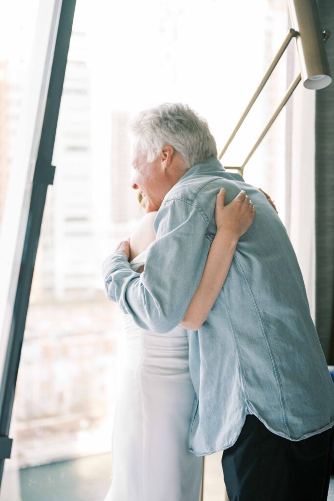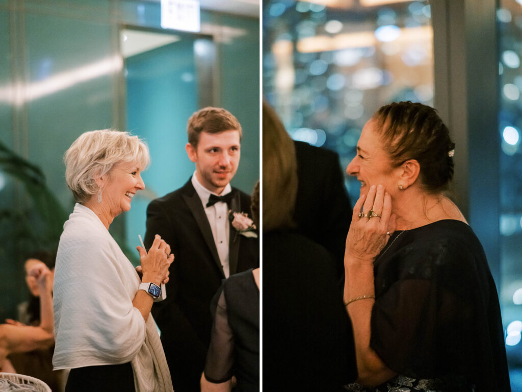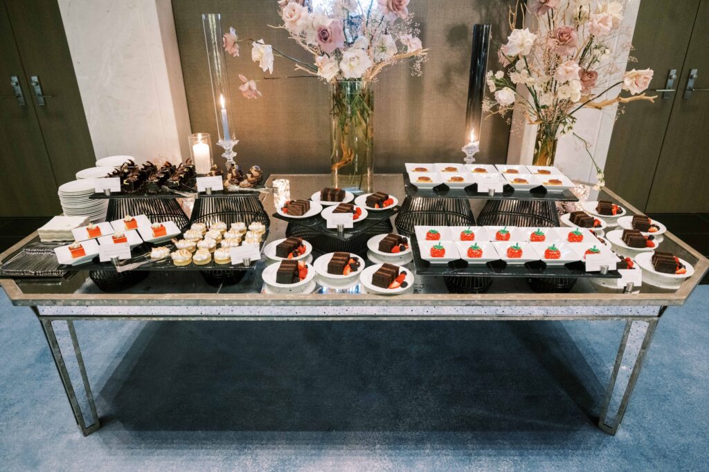When I walked into Kaley’s bridal suite, it became clear this wasn’t just another wedding. Thoughtful details seemed to be everywhere: bridesmaid boxes filled with goodies like chic reception sneakers and cozy shawls (perfect for the rooftop chill!). Even their invitation suite showcased adorable custom illustrations of each wedding party member. It’s these tiny personal touches that guests always remember.