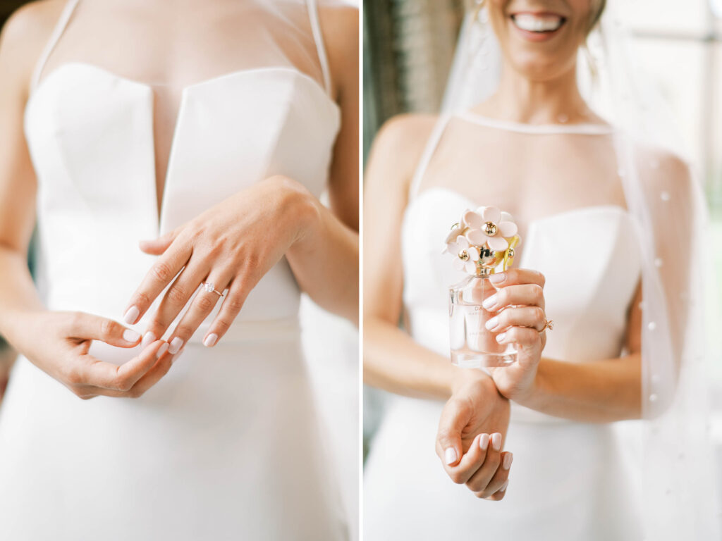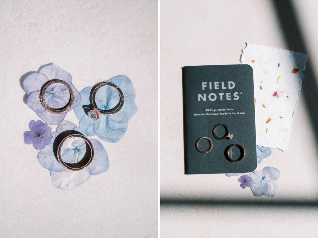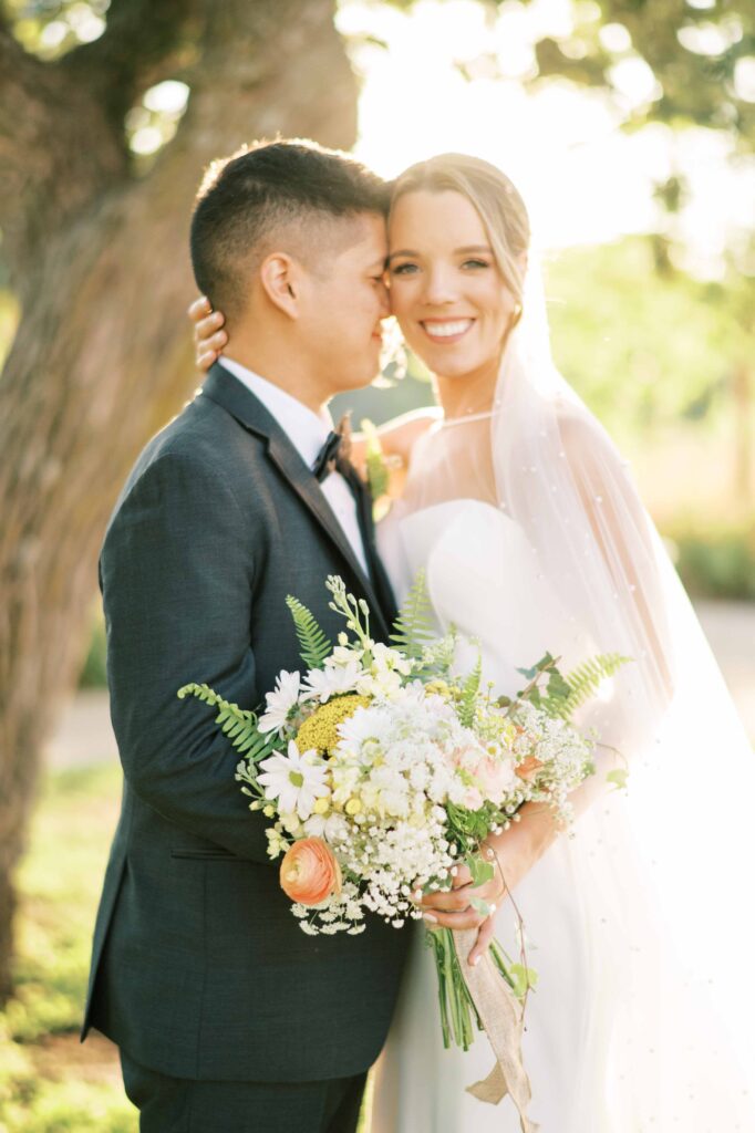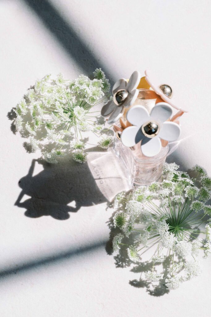 The theme they chose—whimsical wildflowers—echoed perfectly throughout the day. Kat personally sourced their florals, showcasing her dedication and meticulous eye. Honestly, the more I discovered, the more amazed I became at the depth of her creative talent. Even their vows were gently handwritten inside delicate “Field Notes” books, complete with carefully pressed wildflowers. Marc Jacobs’ Daisy perfume was the obvious choice for fragrance. With its white daisies perched atop the bottle, it was as if every tiny element whispered of Kat and Tim’s carefree, vibrant love.