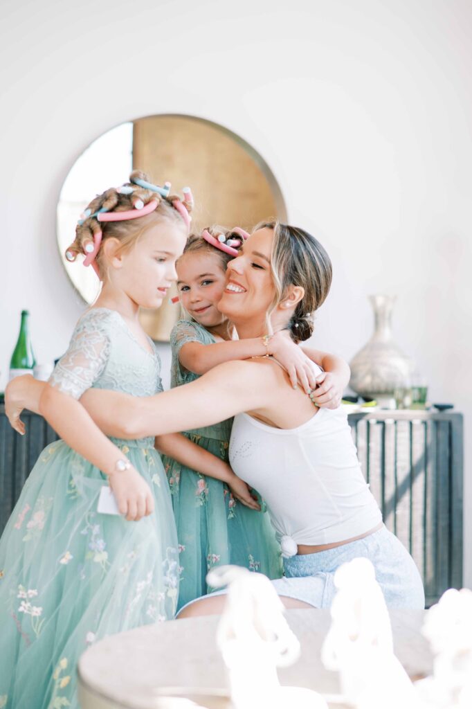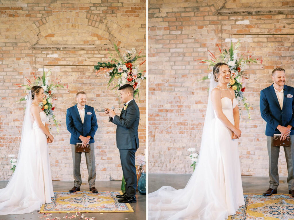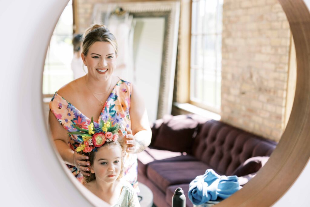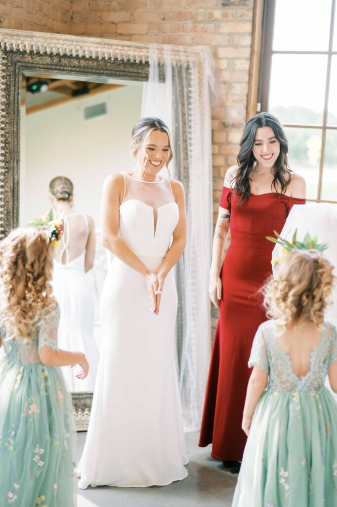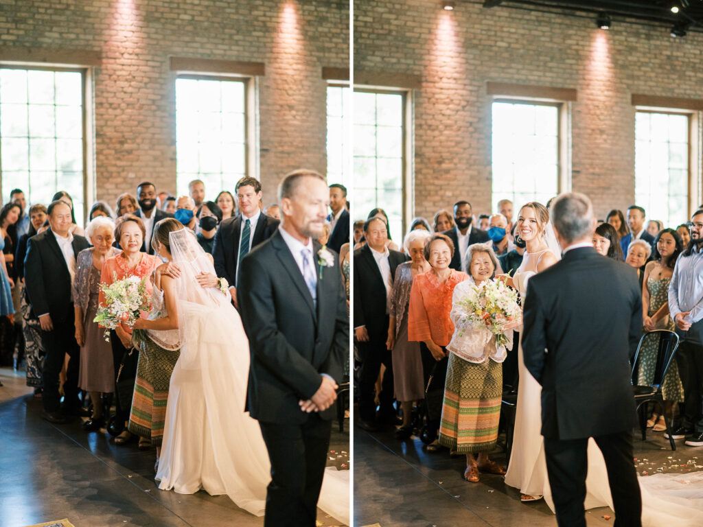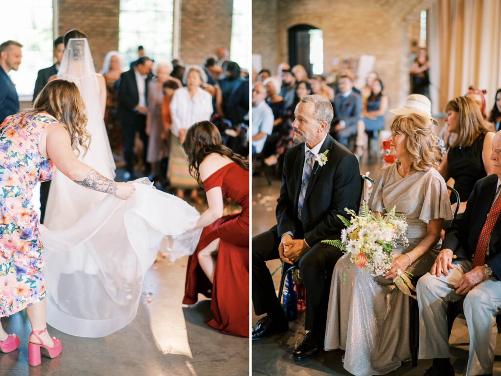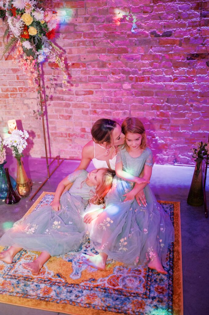 And speaking of adorable, can we pause to talk about Kat’s flower girls? They practically danced down the aisle in lace dresses embroidered with tiny petals, twirling beneath the most gorgeous flower crowns. Kat gifted each girl a sweet pressed-flower resin bracelet with a cute bee charm—something they’ll treasure forever. Seeing their beaming faces reminded me why weddings hold such tangible magic: watching love ripple through family, friends, and even the littlest hearts. (Did you catch that her grandfather handed them the rings?! Oh, my heart.)