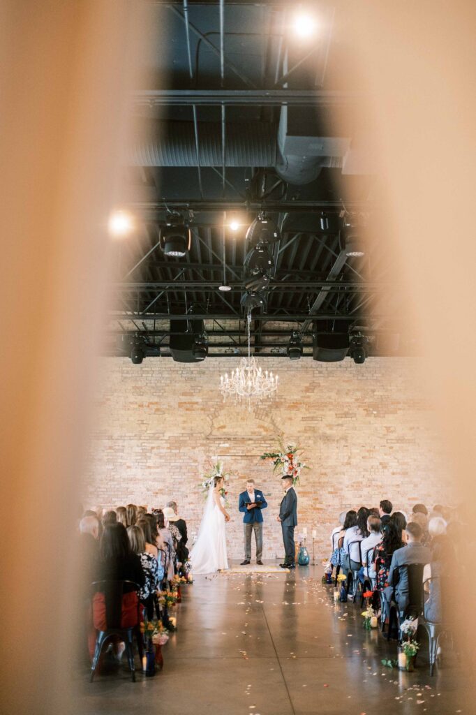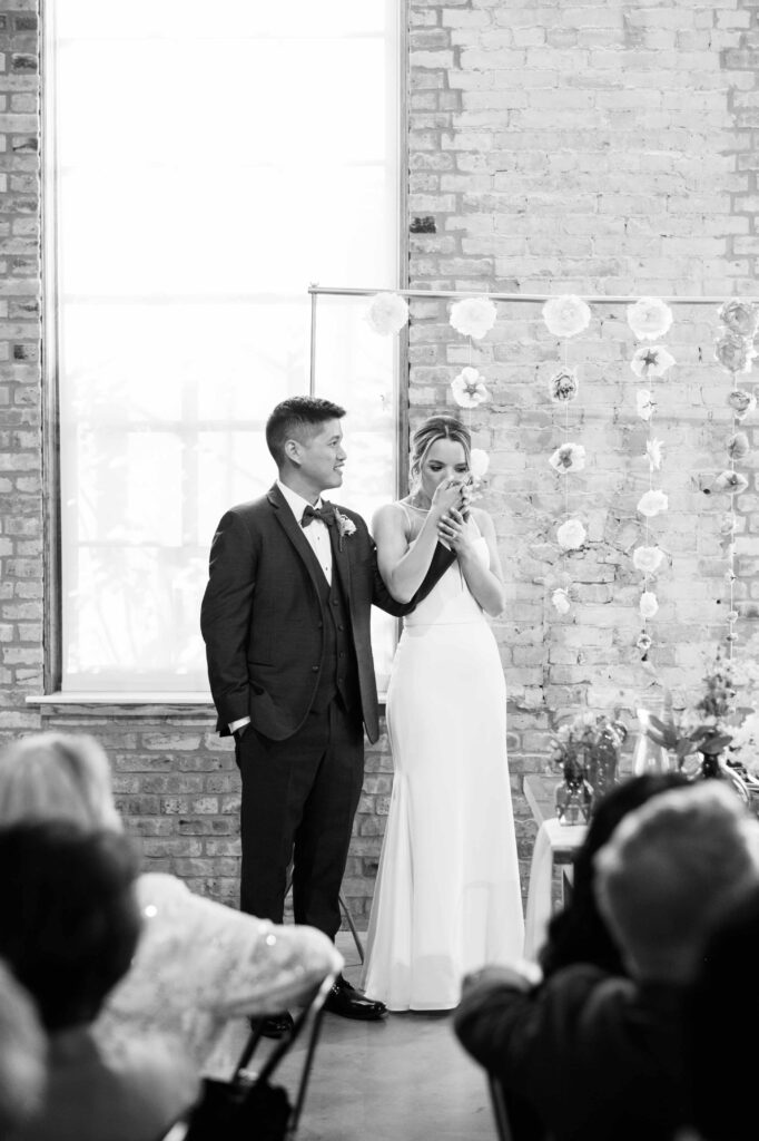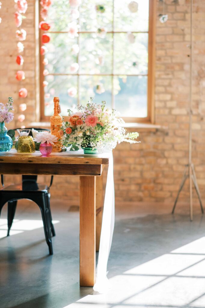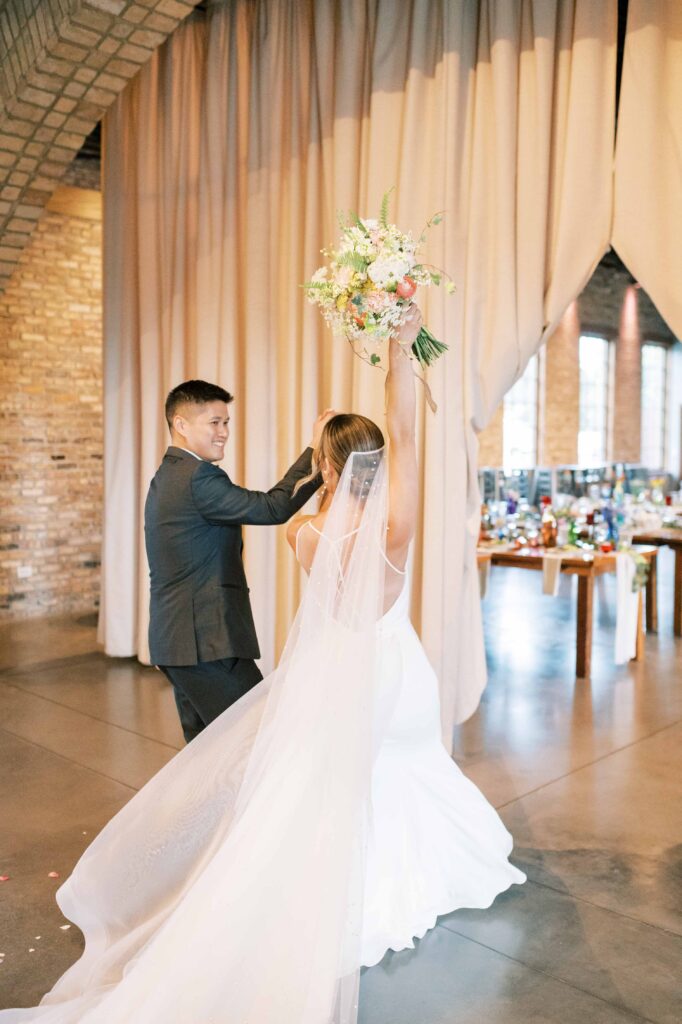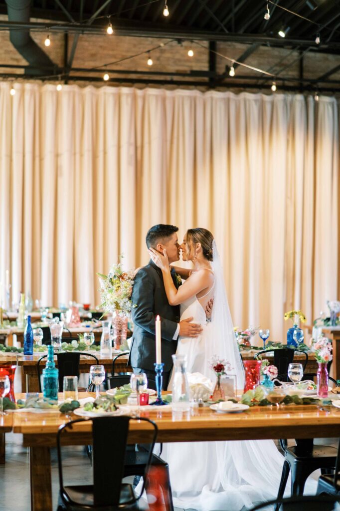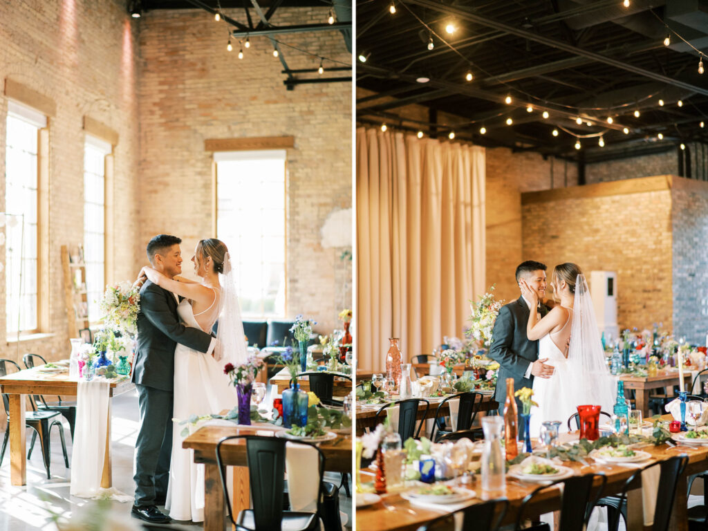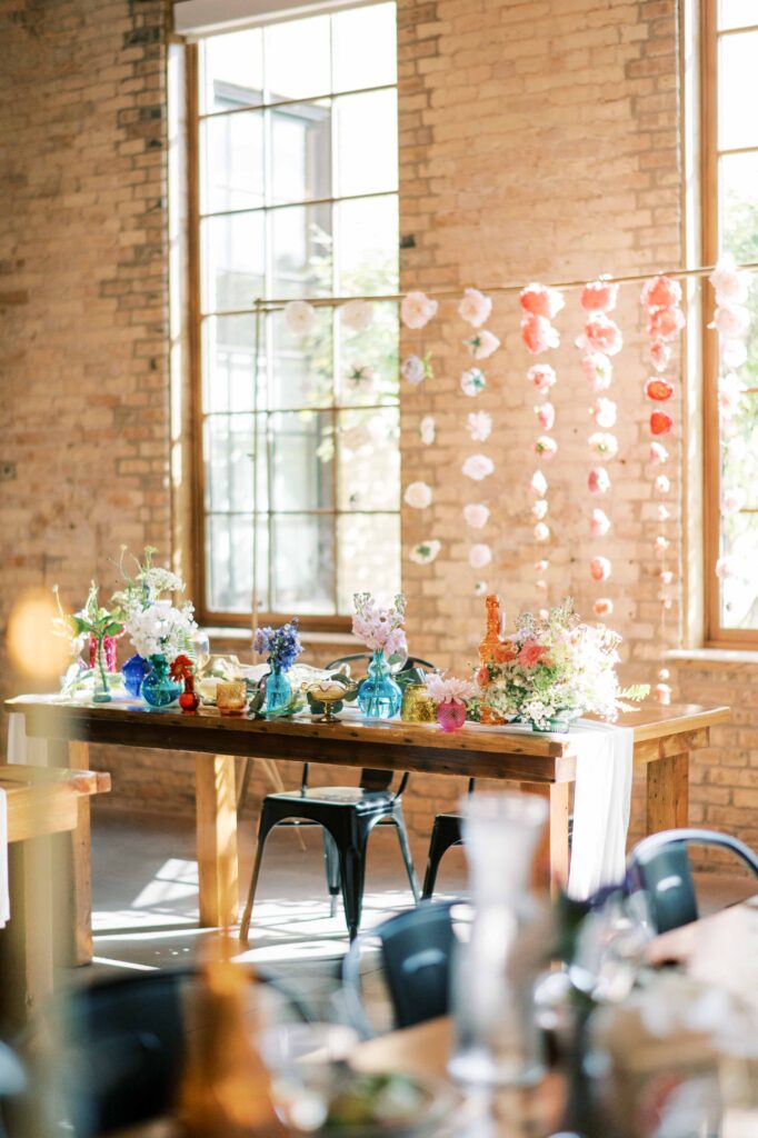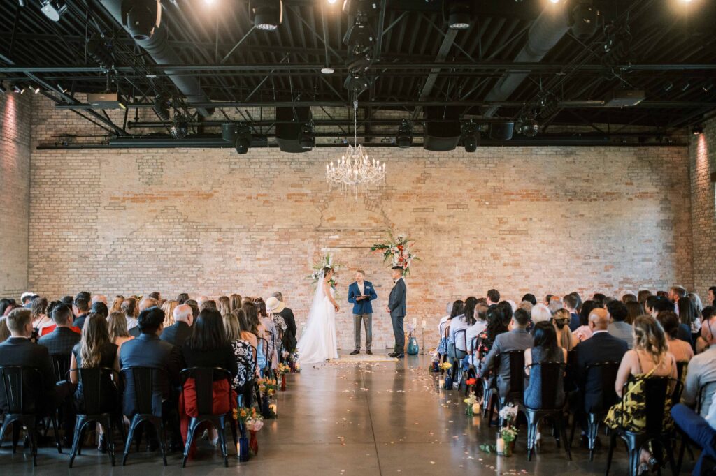 Do you ever meet a couple whose love story stays with you long after the camera clicks? Kat and Tim are that kind of pair—warm, genuine souls with a chemistry that’s simply radiant. When I first photographed their engagement session in Evanston, their easygoing nature and laughter-filled connection immediately captured my heart. So, needless to say, anticipation was running high for their wedding day at the stunning Brix on the Fox in Chicago. They selected The Industria venue for its simplicity and intimate charm. Plus, it has one of the prettiest outdoor spaces to relax and play games during cocktail hour. Their wildflower wedding turned out to be even lovelier than I ever imagined.