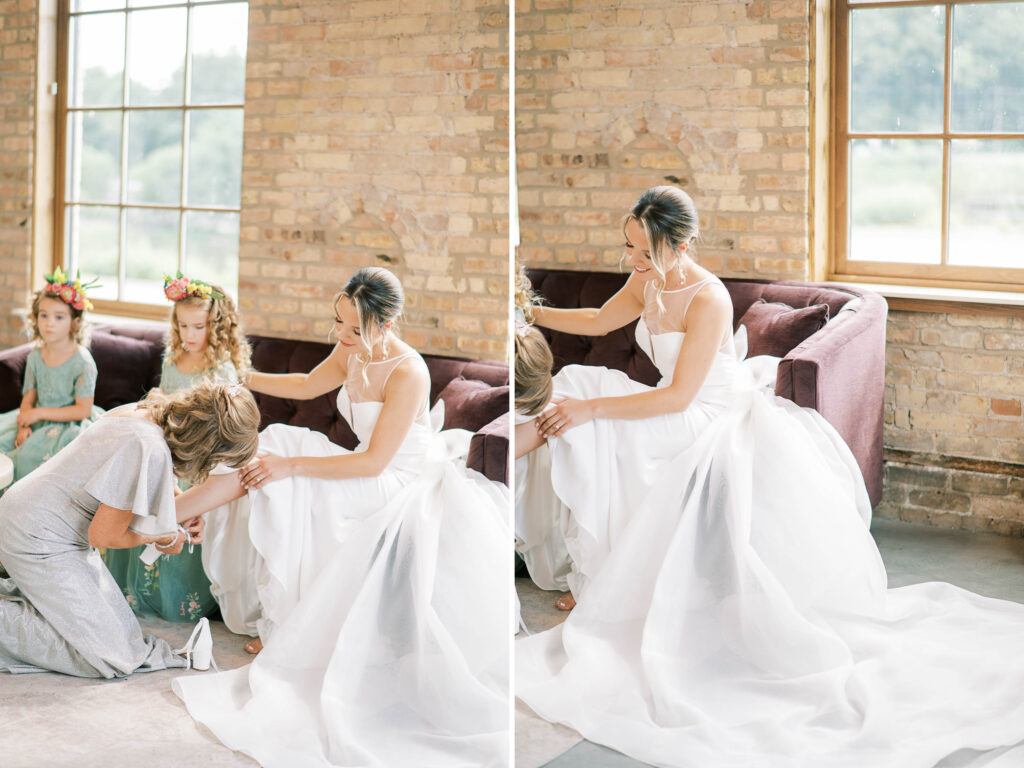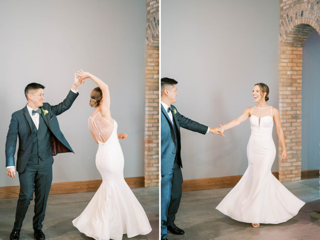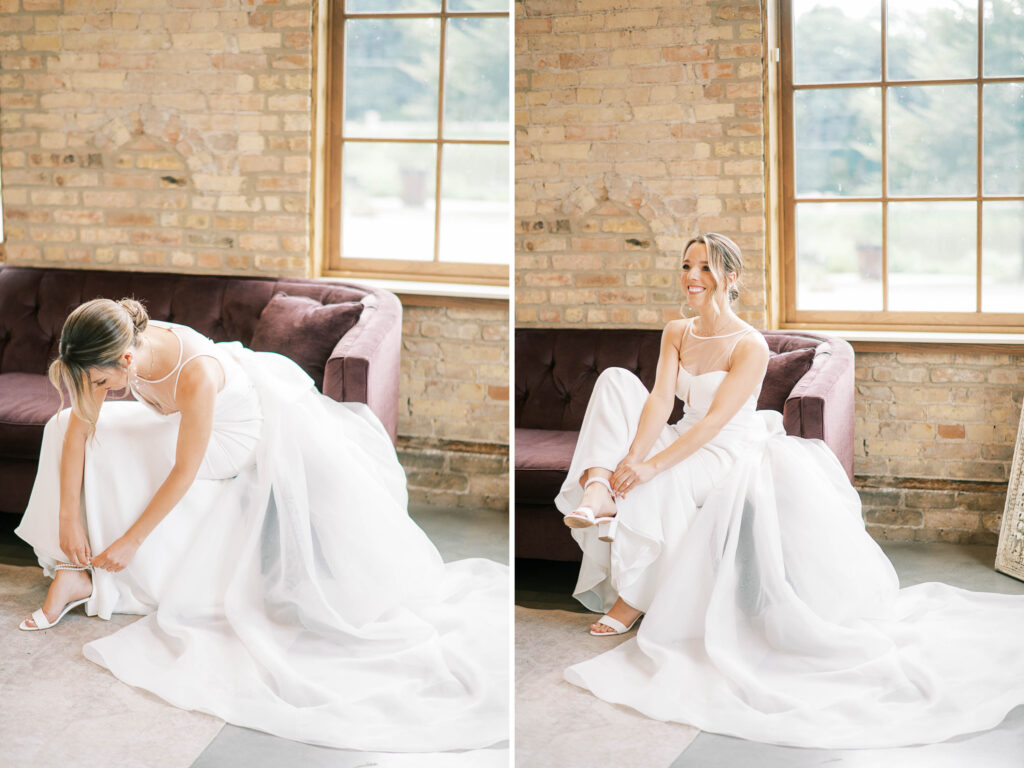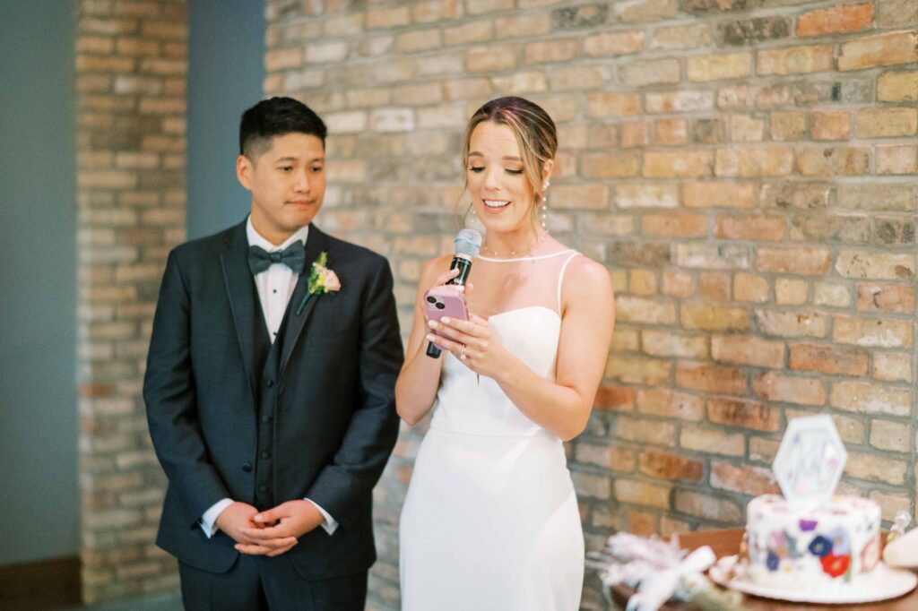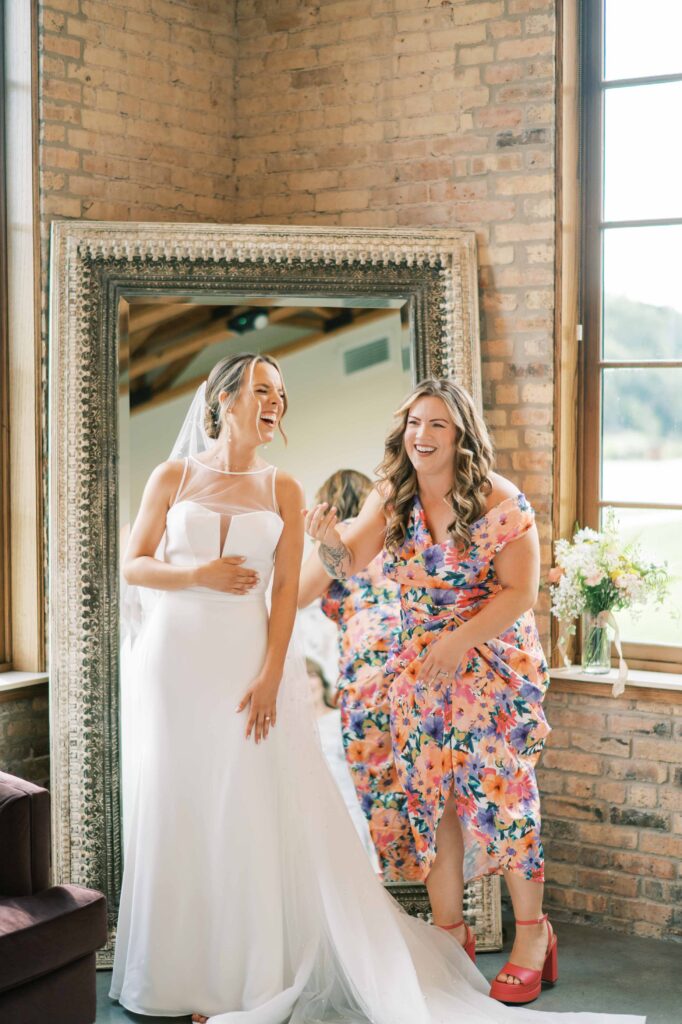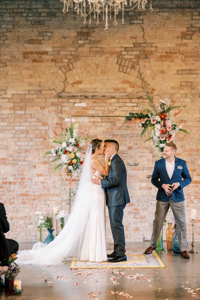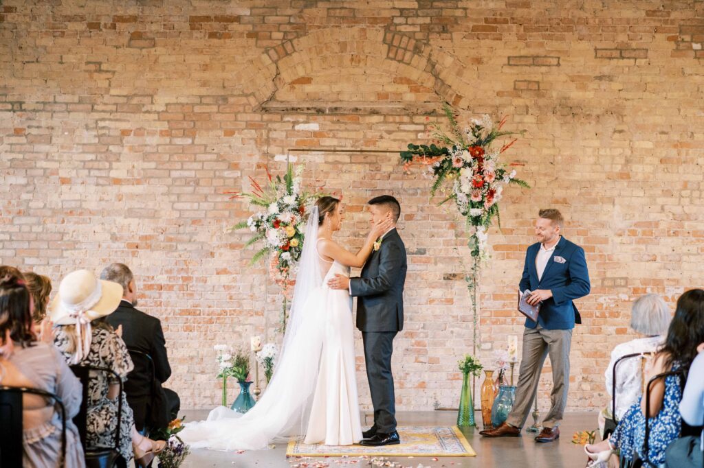 Do you ever meet a couple whose love story stays with you long after the camera clicks? Kat and Tim are that kind of pair—warm, genuine souls with a chemistry that’s simply radiant. When I first photographed their engagement session in Evanston, their easygoing nature and laughter-filled connection immediately captured my heart. So, needless to say, anticipation was running high for their wedding day at the stunning Brix on the Fox in Chicago. They selected The Industria venue for its simplicity and intimate charm. Plus, it has one of the prettiest outdoor spaces to relax and play games during cocktail hour. Their wildflower wedding turned out to be even lovelier than I ever imagined.