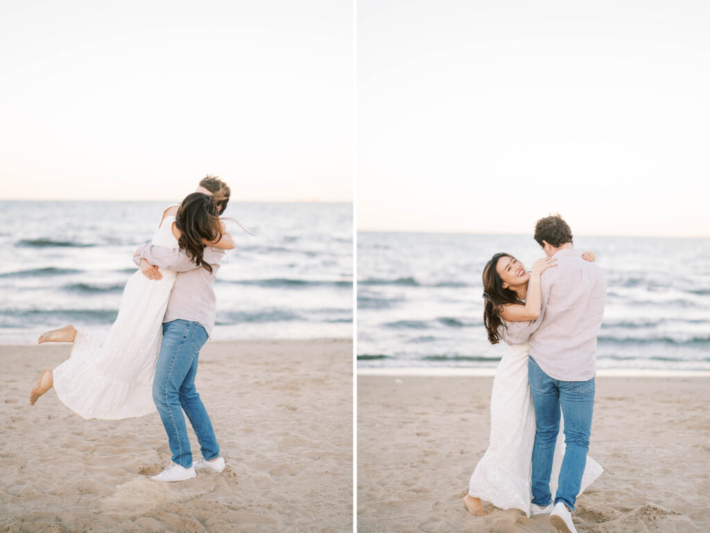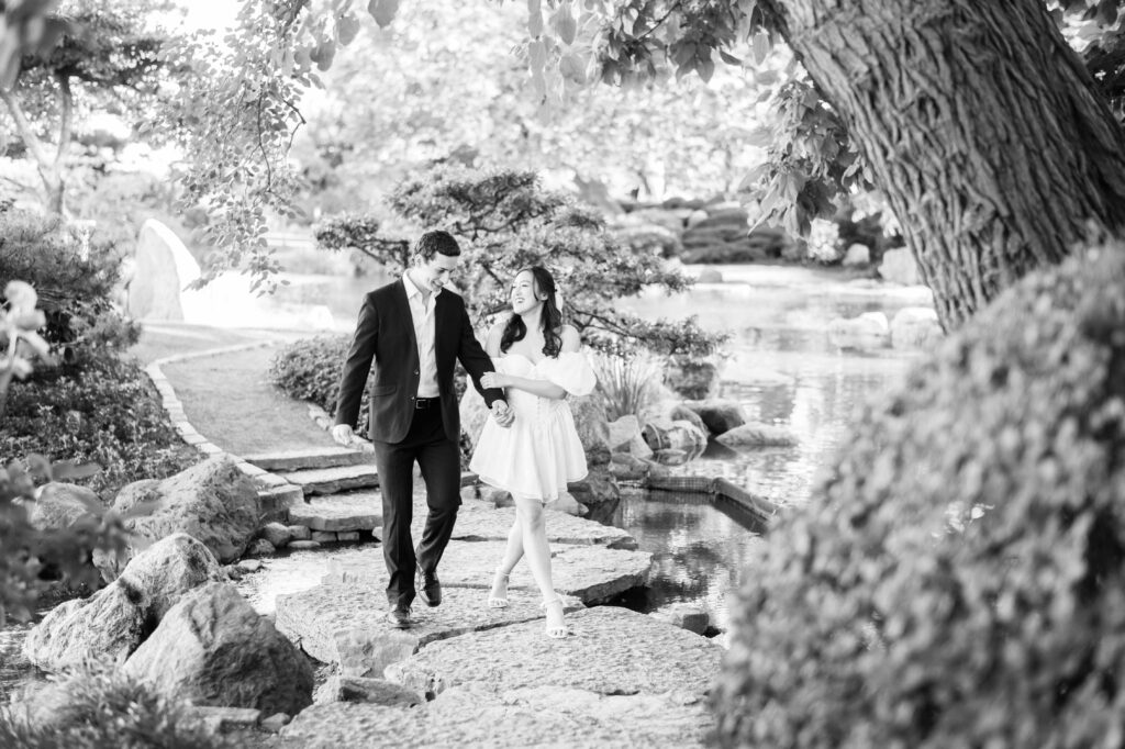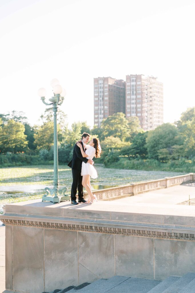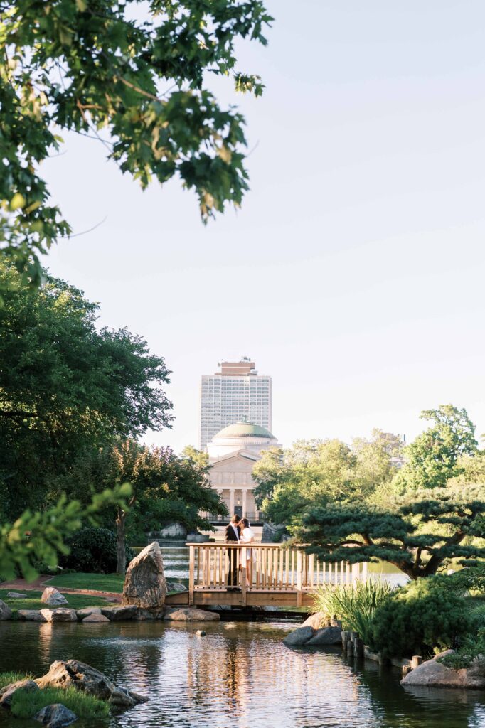 If you’re unsure of exactly what aesthetic you prefer, the Museum of Science & Industry grounds are ideal. Do you want elegant architectural shots? Check. Soft, romantic garden scenes? Absolutely. Casual, playful moments on the beach? Yes, that’s here too. Having multiple settings in one spot also gives you the chance to easily change outfits and achieve completely different looks without having to travel.