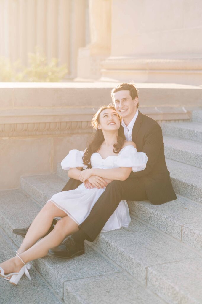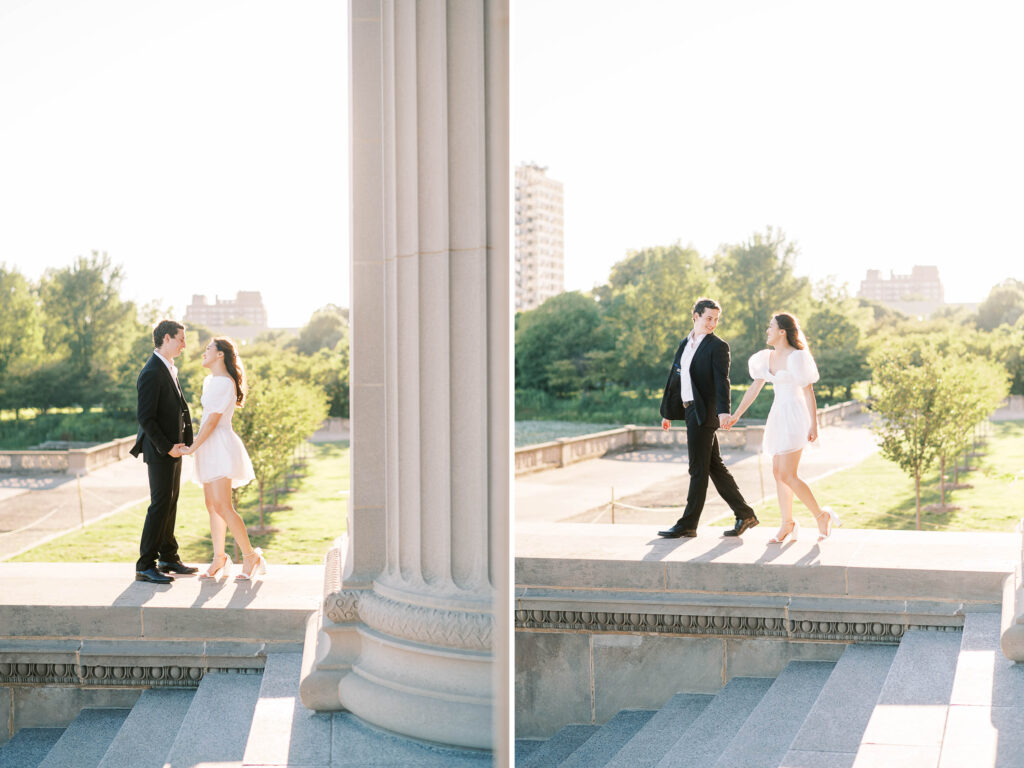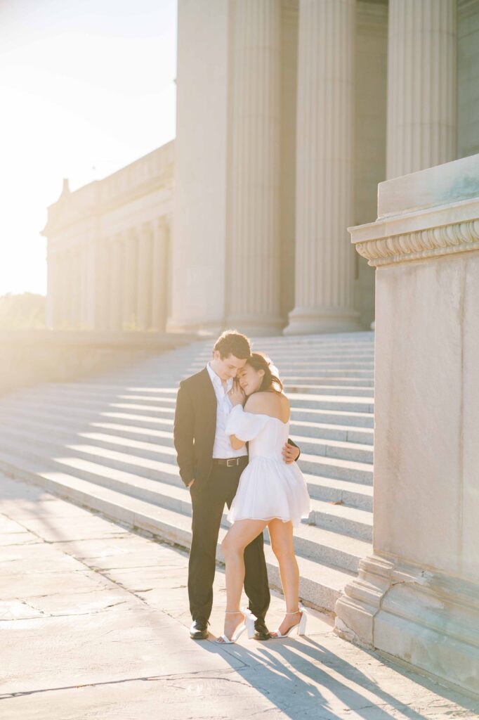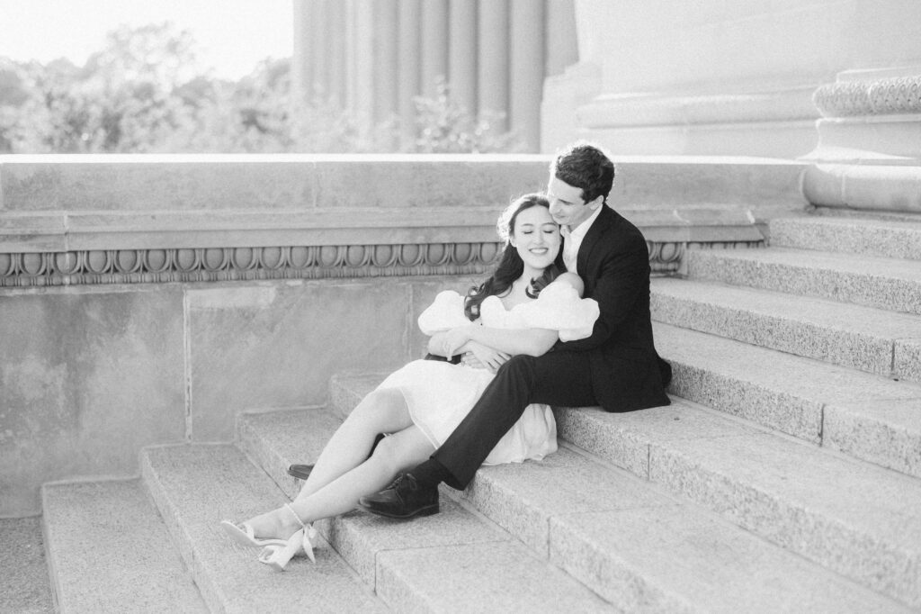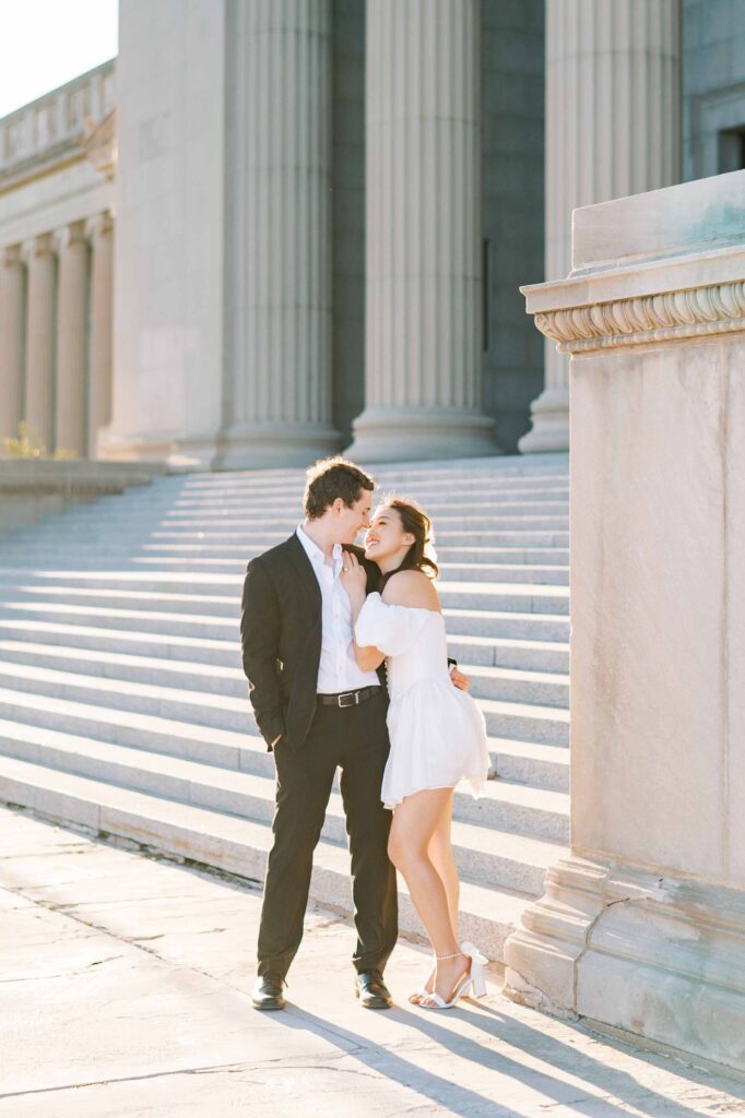 This location is consistently at the top of my list for engagement sessions. It’s the kind of place that truly has it all: grand architectural details, lush gardens, peaceful ponds, elegant staircases, and even a beach nearby. It’s rare to find a single setting with such an impressive array of backdrops, especially one that doesn’t require stepping inside the museum.
